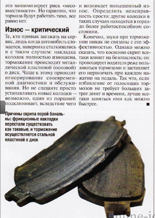 Вот и отскрипели. Сегодня пришлось в гараж поставить. Проблема как и у всех--скрип, то ли писк, то ли хруст. Началось на 7000, при поворотах вправо и притормаживании, но забыл. Сейчас 11000 и при снятии левого переднего колеса обнаружил частичное разрушение внутренней колодки. Как кусок отломили, края четкие, чистые, острые. До сего момента ездил час и свист-шуршание все сильнее и постоянней начинались. А по зиме при такой же симптоматике еще и щелчки какие то были при выворачивании р-колеса вправо, вылечил интенсивным разгоном и таким же торможением(свист, щелчок и все стало нормально). Теперь ясно, что проблема не ушла а только отодвинулась. Прочитал всю ветку, так кто что ставил? пора бы в двух словах отписать, если кто что менял, и на что менял. По ехзисту выбор великий, яаж потерялся, качните в какую-нибудь сторону. Пока только про АТЕ и Феродо лестные отзывы увидел