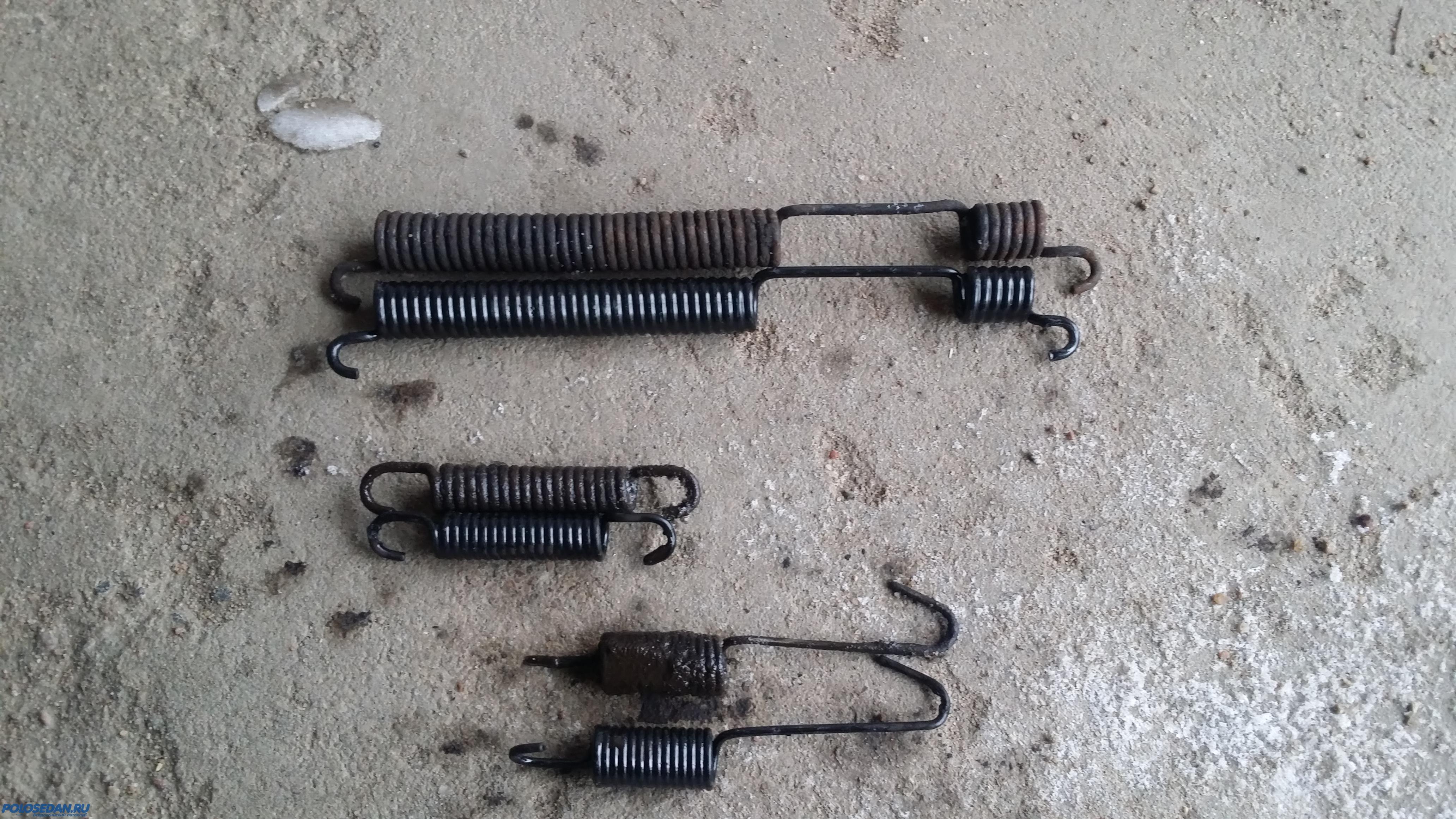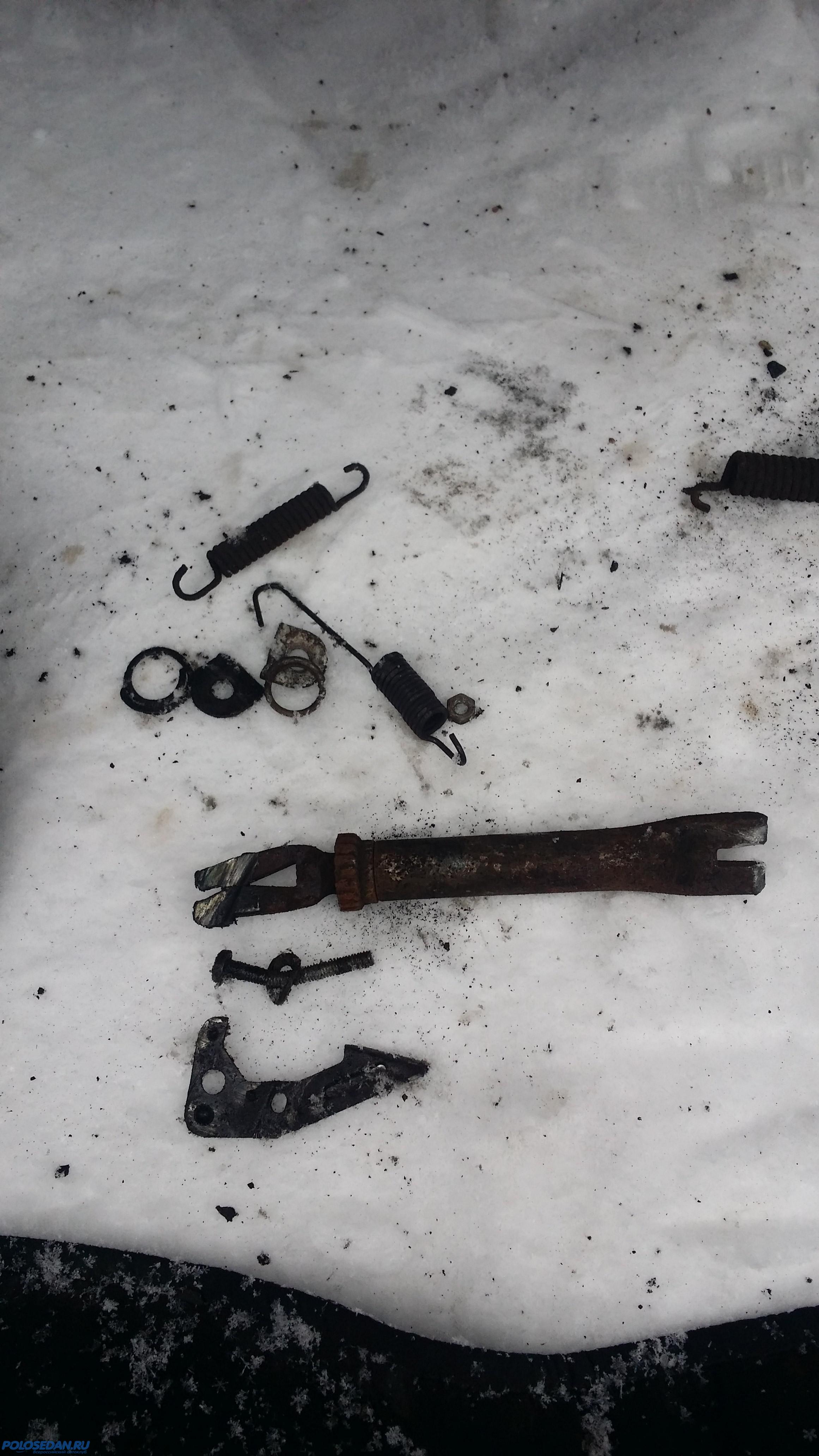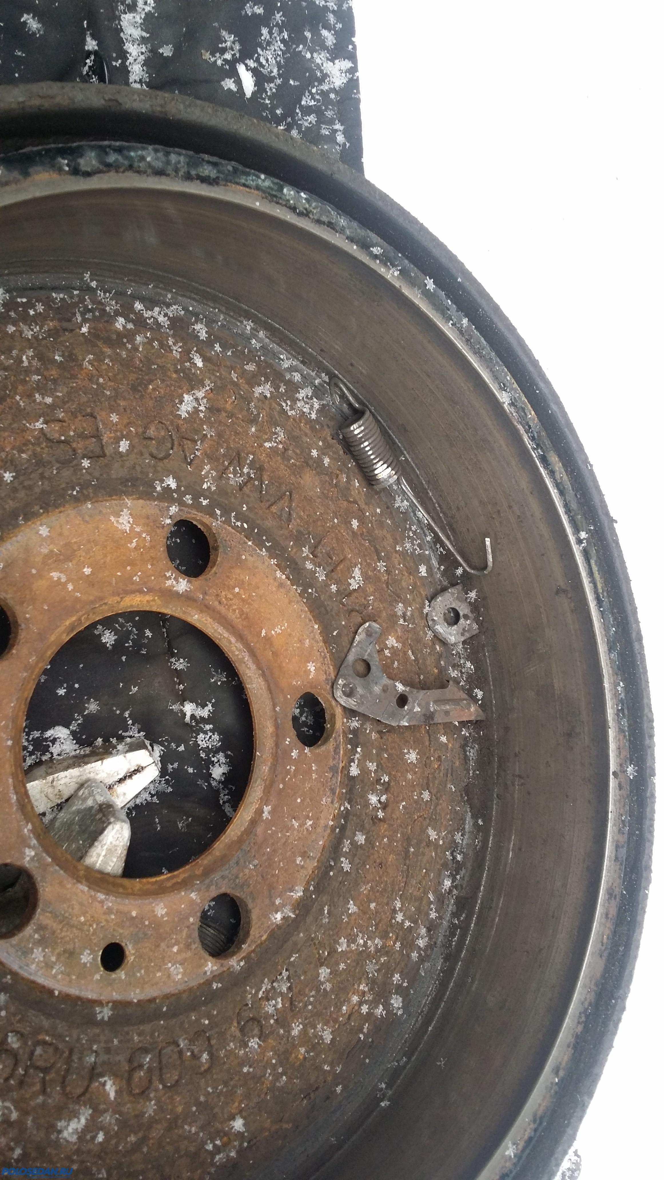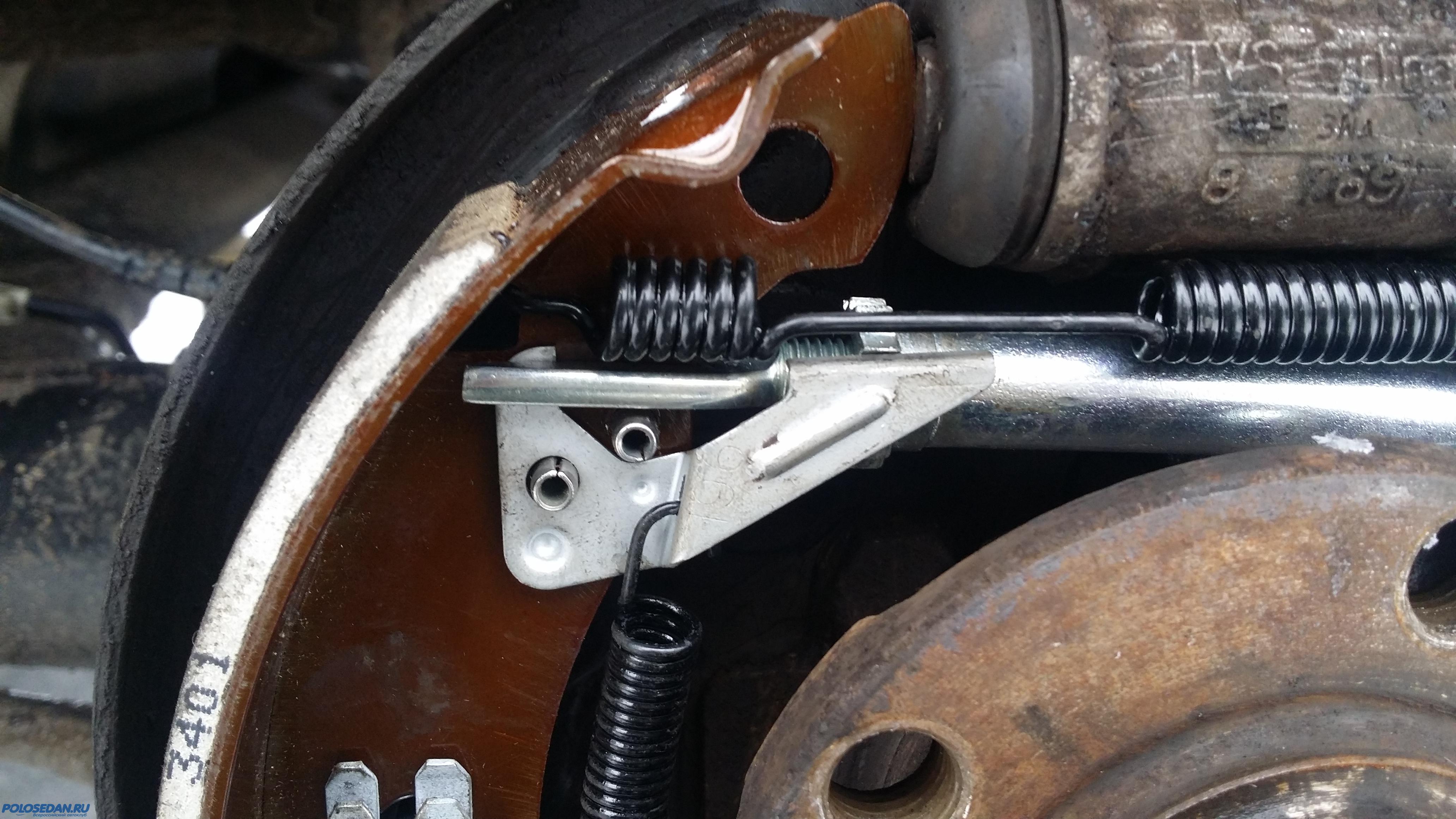 Ребят, поменял я колодки на оригинал и ремкомплект поставил новый! Барабаны в этот раз снялись, как по маслу, в отличие от прошлого раза, когда их от тормозного щита пришлось отжимать отвертками. В левом барабане бурт полностью стерся, рабочая поверхность отполировалась и распорная планка вылетела, какое-то время терла об "железо" барабана, пока не заклинила. Вообщем, весь мой временный колхоз с заменой опорных стоек (солдатиков) пассатовскими, и винтами М3 за неделю развалился; при вскрытии справа - перекошенная распорная планка, разогнутый в плоскую пластину регулировочный рычаг и чудом держащиеся остальные детали тормозной системы, слева же высыпалась кучка ржавого железа, а также выяснилось, что накладки старых колодок "посечены" железками, а также у пружины, удерживающей регулировочный рычаг, отломился хвост. Поставил новые оригинальные колодки с новым ремкомплектом задних тормозов, отрегулировал ручник и теперь машина тормозит просто железобетонно - чуть посильнее нажмешь на педаль - и уже клюешь носом, стараюсь нажимать плавнее, пока езжу, привыкаю заново! Ручник намертво удерживает авто при четырех щелчках рычага ручного тормоза. Выкладываю несколько фото, сделанных в процессе разборки-сборки задних тормозов.