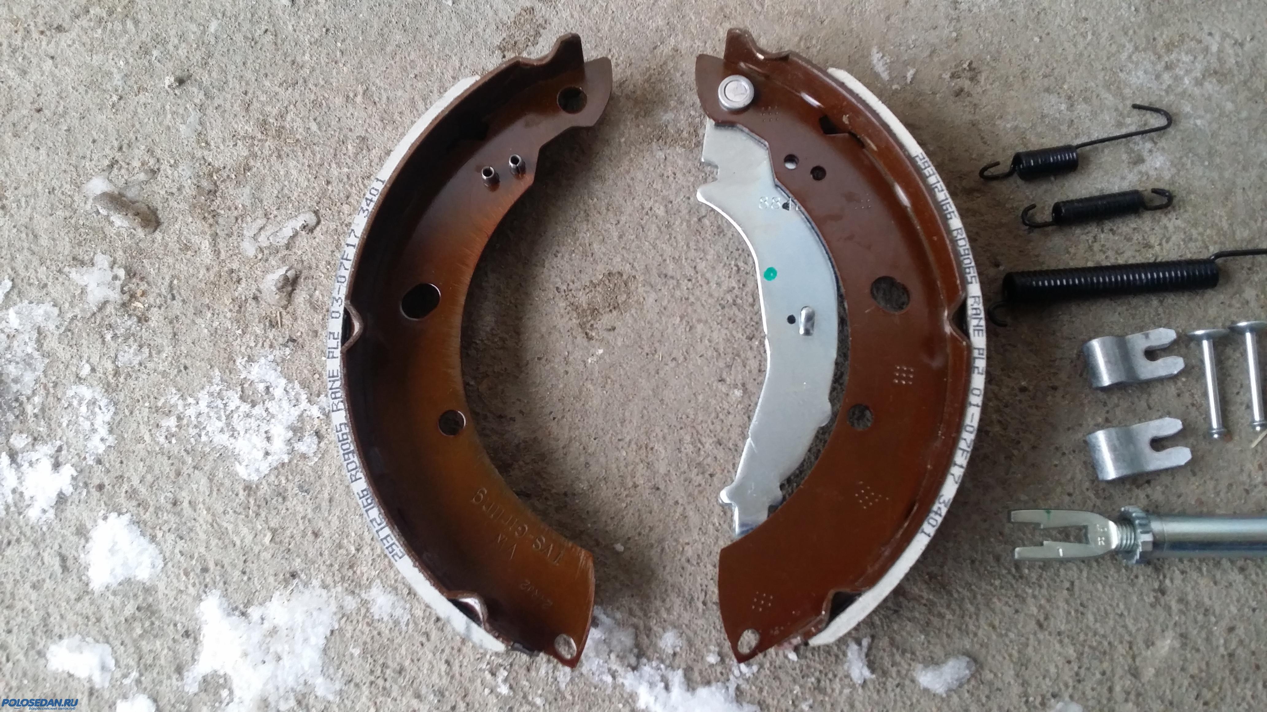 Задние тормозные колодки и барабаны (диски) для VW Polo.