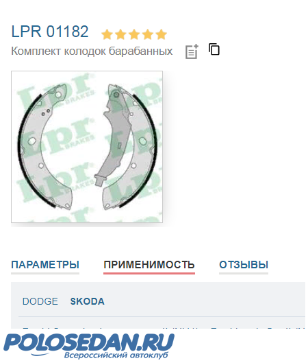 Поэтому вами названные номера колодок LPR 01182 для Додж и Рапид, а Поло седан не числится