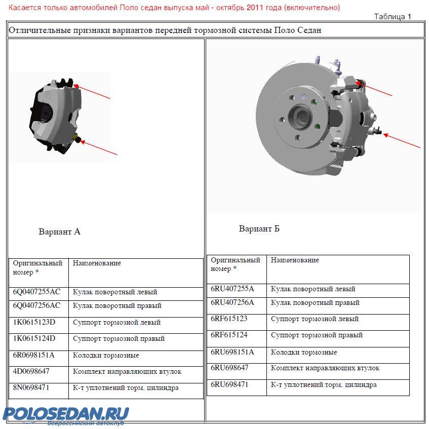 Номера передних тормозных колодок Volkwagen Polo sedan