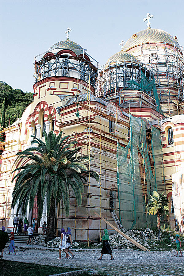 День в Новом Афоне проходит насыщенно. Симоно-Кананитский весь в строительных лесах монастырь с золотом недавно обновленных куполов, водопад на Псырцхе, пещеры и, конечно же, восхождение на Иверскую гору. И всюду туристы, туристы... Кажется, что эти неугомонные искатели новых ощущений съехались сюда со всей Абхазии.