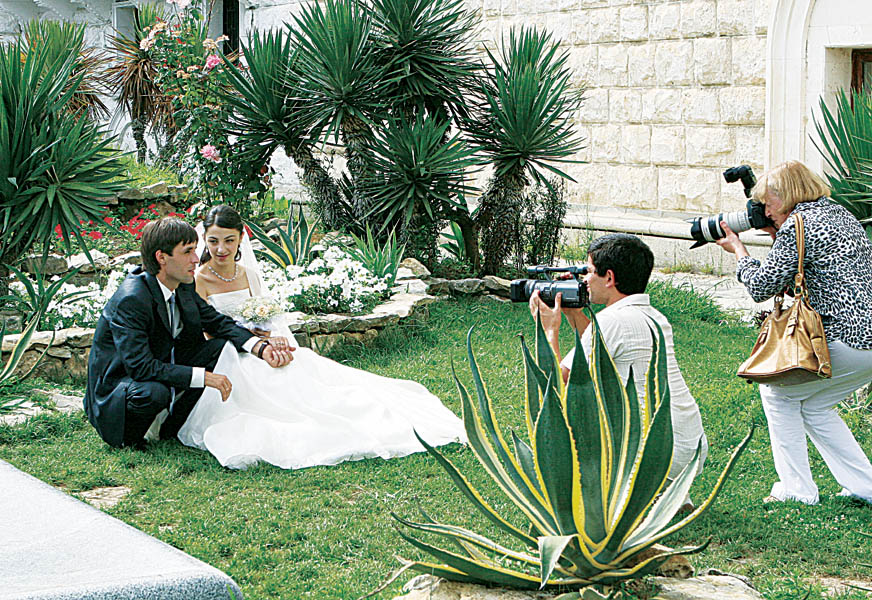 Оставляем вещи в залог того, что вернемся, и опять выходим на набережную. Рядом, у величественного здания национального театра, не менее величественный фонтан. Стоящие в несколько рядов грифоны изрыгают мощные струи воды. У подножия на газоне молодожены. Рядом фотограф и видеооператор. Фотосессия.