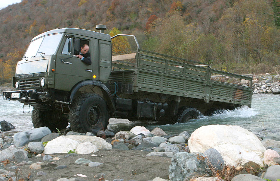 Комментарий к файлу: Переправу через Гумисту обеспечивает специально выделенный полноприводный КамАЗ.