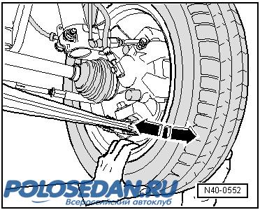 - взявшись за колесо в его нижней части, с силой пошатать его в направлении стрелок (внутрь - наружу).