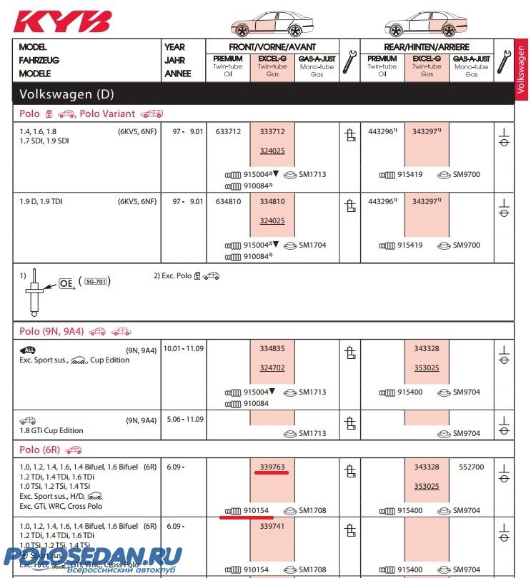 Все указанные выше амортизаторы внедряются без доработки напильником в подвеску поло с кузовом седан любого года выпуска!