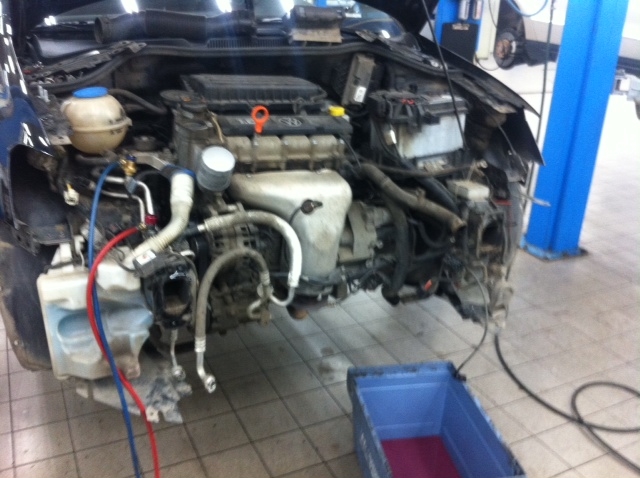 Опубликую немного фоток по замене радиатора кондиционера (конденсатор). Фотки (и машина на них) не мои поделился человек.