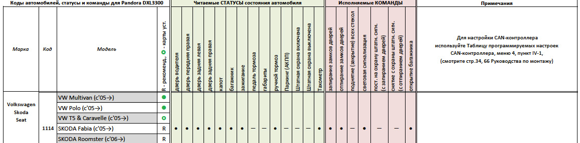 Pandora DXL 3100 поддерживает работу с данным автомобилем по цифровой шине в рамках приведенного ниже на рисунке.