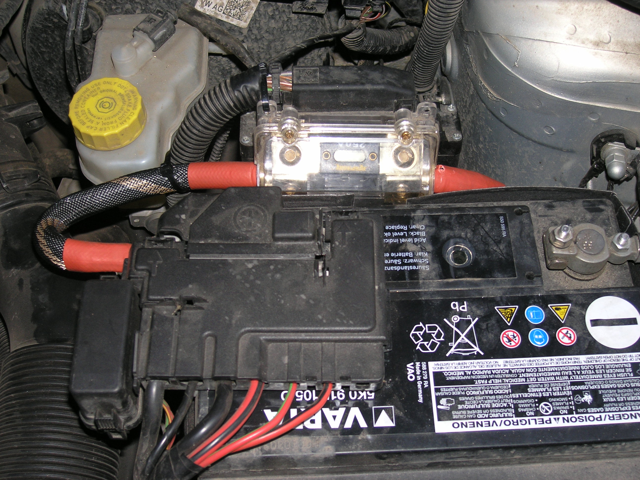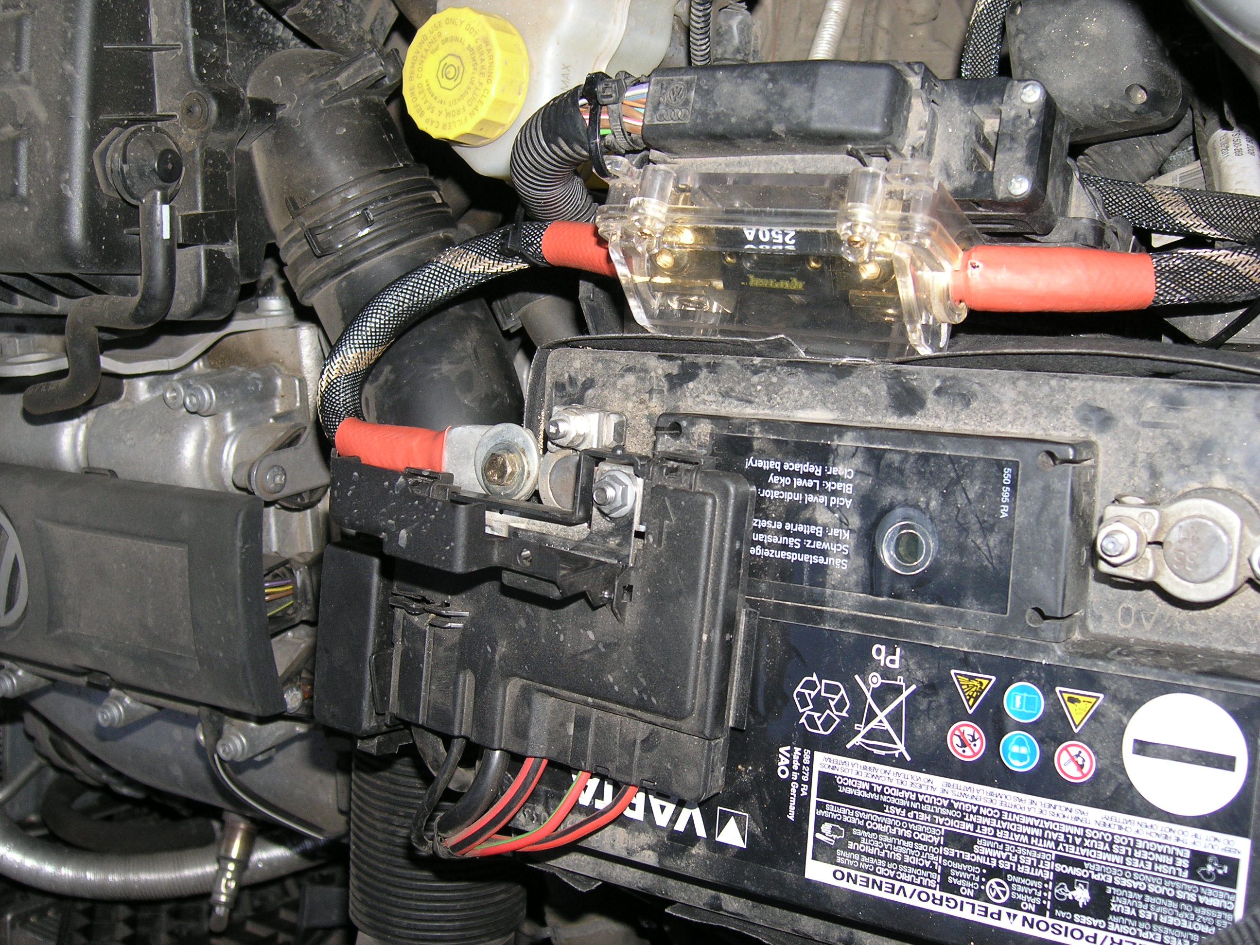 На штатном блоке предов на АКБ снял какуюта обсалютно не нужную палассмасину. Для удобства крепежа клеммы.