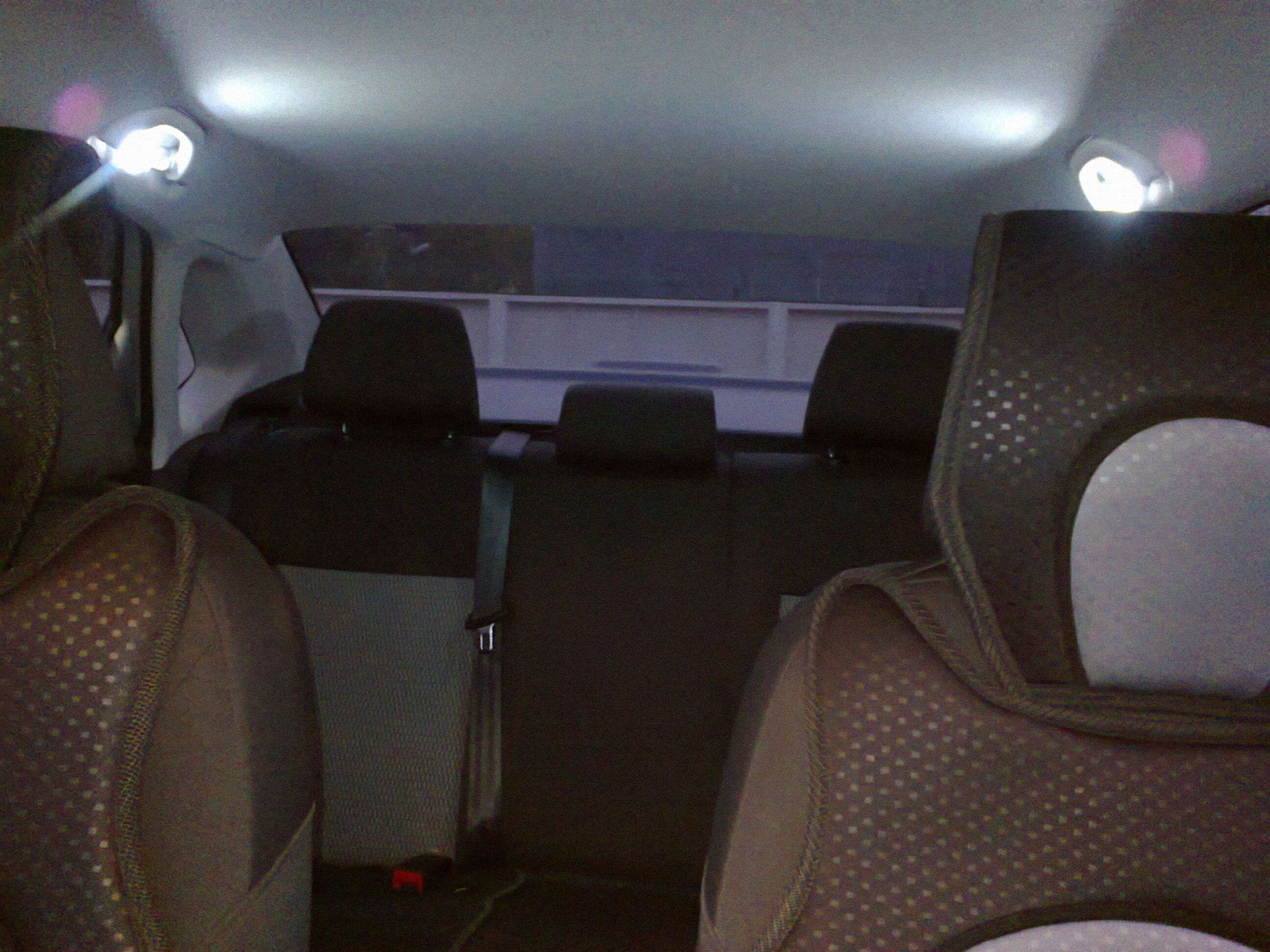 Да вобщем и пасать то особенно нечего..... купил два плафона от Дэу Матиз (номер в экзисте и автодоке 96247398 ) по цене 70 р.шт в количестве двух штук.... они да же с лампачками приходят... Потом вытащил лампочку (пальчиковую) и нагрев паяльником выкинул-выплавил из плафона оба контакта.... осталась одна пластмаска.... Купил две светодиодные лампочки ( не знаю как цоколь называется правильно) (пальчиковые) назовем так на 8 светодиодов и приклеил планку к плафончику.... вырезал по шаблону дырку под ручкой и спаяв всё на маленьких разъёмах собрал..... подключался припояв левую и правую - соответственно к левой и правой лампе переднего светильника.... провода не тащил через центр потолка .... Снял передние панели передних стоек и тупо просунул толстый провод до уже готовых отверстий под ручками- там ему ничего не препядствует... Теперь он лежит под обшивкой потолка обёрнутый в паролон и не гремит... dolf_ru_ Раъёмы купил самые маленькие какие нашёл в радиотехническом магазине ( отПК)---..... к сажолению все этапы не зафоткал.... ну думаю трудностей не возникнет.... если что пишите....