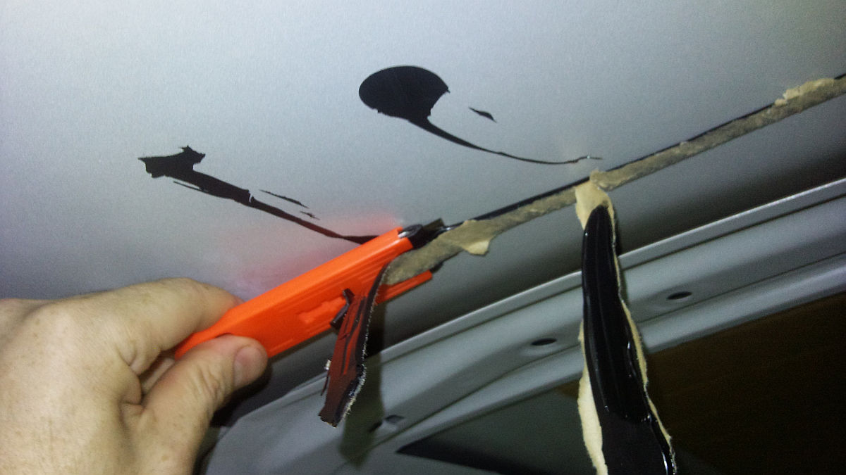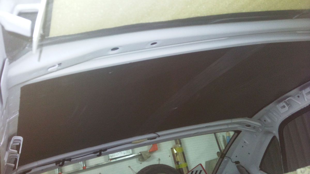Комментарий к файлу: Отдираем штатный ... даже не знаю как назвать, это и не шумка и не теплоизолятор, я так думаю элемент жесткости крыши.
