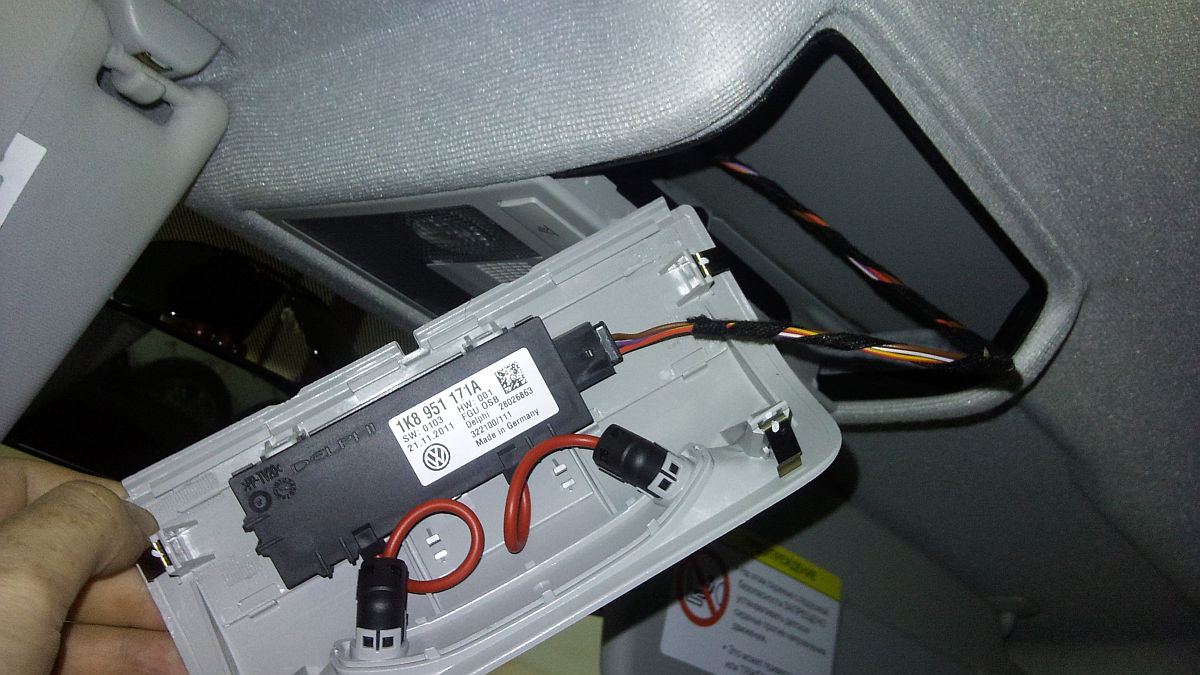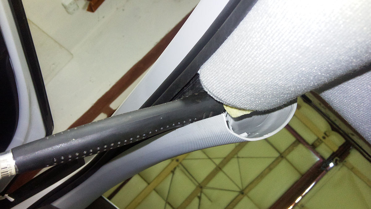 Комментарий к файлу: Установленный фонарь с внутренней стороны обшивки потолка. Родные уплотнители сняты (остался след змейкой от клея).