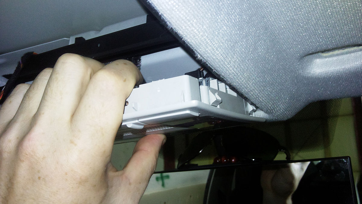 Комментарий к файлу: Снимаем фонарь освещения (можно слегка отогнуть обшивку потолка, легче выйдет).