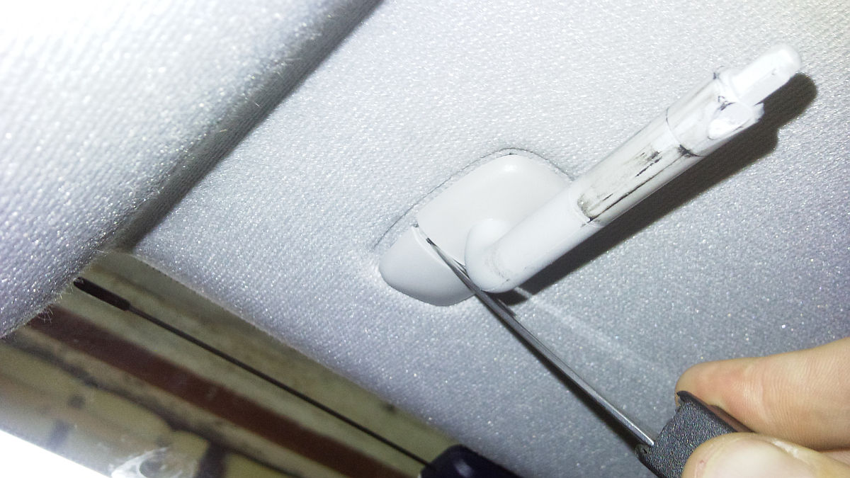 Комментарий к файлу: Тут и далее снятие солнцезащитных козырьков, ничего сложного нет, поддеваем и снимаем. Сами козырьки со штырей просто стягиваются.