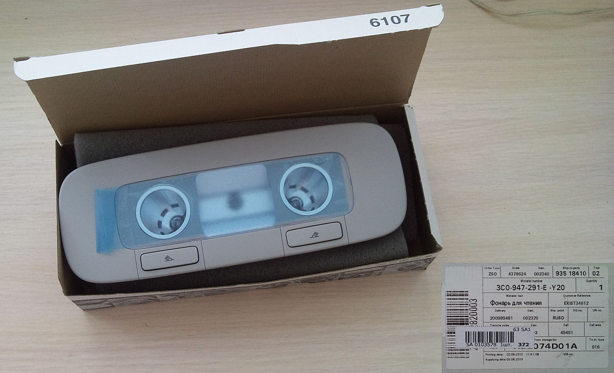 Комментарий к файлу: В Екзист был приобретен "Фонарь для чтения жемчужно серый" от Пассат Б6.