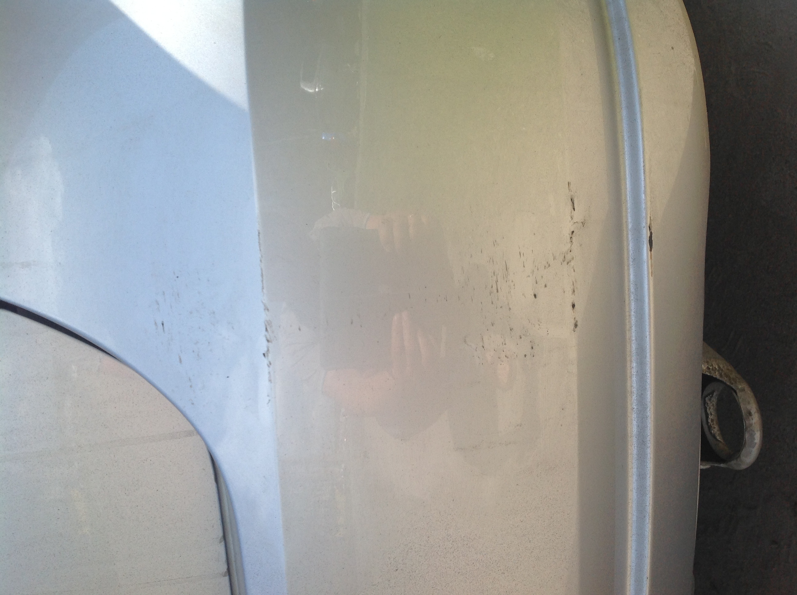Доброго всем вечера. Помогите советом: на задней двери, стекле и ручке какая-то белая сыпь. Такое ощущение, что где-то поблизости распыляли краску и мне все это ветром надуло. Пятна очень мелкие, но их довольно много. Пробовал потереть теплой водой и мягкой тканью - практически не помогло. Чем бы безболезненно оттереть? А еще чем бы победить вот такого плана царапину? см.фото (фото позаимствовал чуть выше в качестве образца, у меня примерно такого же плана царапина) Удаление(полировка) царапин на кузове.