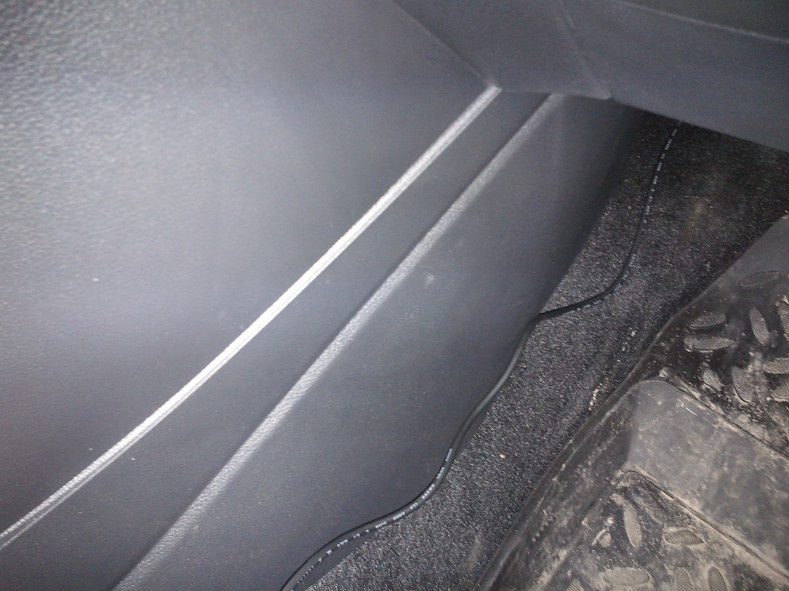 на стойке провод зажат самой облицовкой, я ее даже не снимал, просто отогнул и запрвил провод со стороны двери. На накладке имеются ребра, вот они и прижимают провод к кузову. Провод стянул стяжкой за бордачком. Спустил его под ковролин и заправил все под пластик центрального тунеля, ну а дальше в прикуриватель.