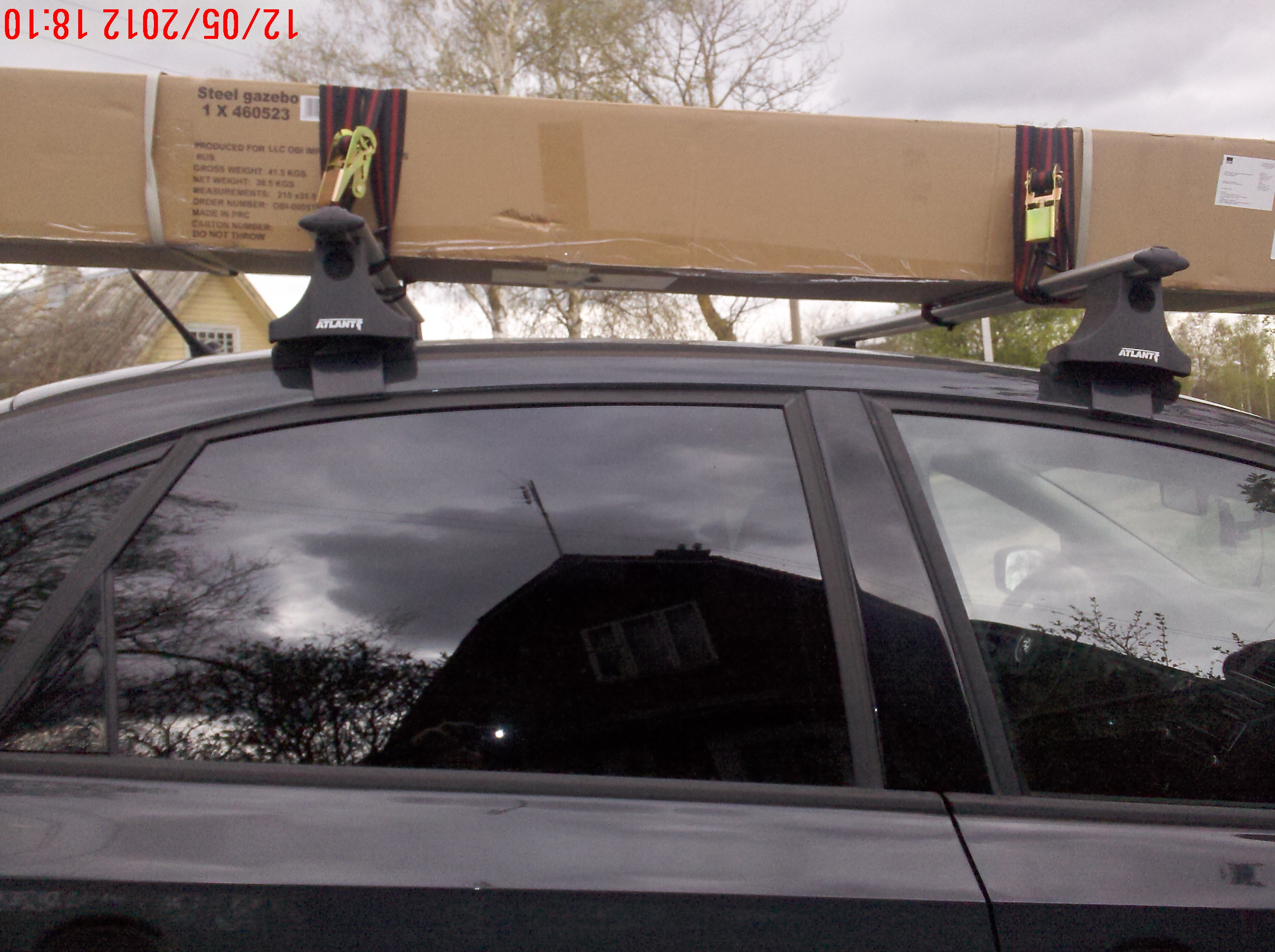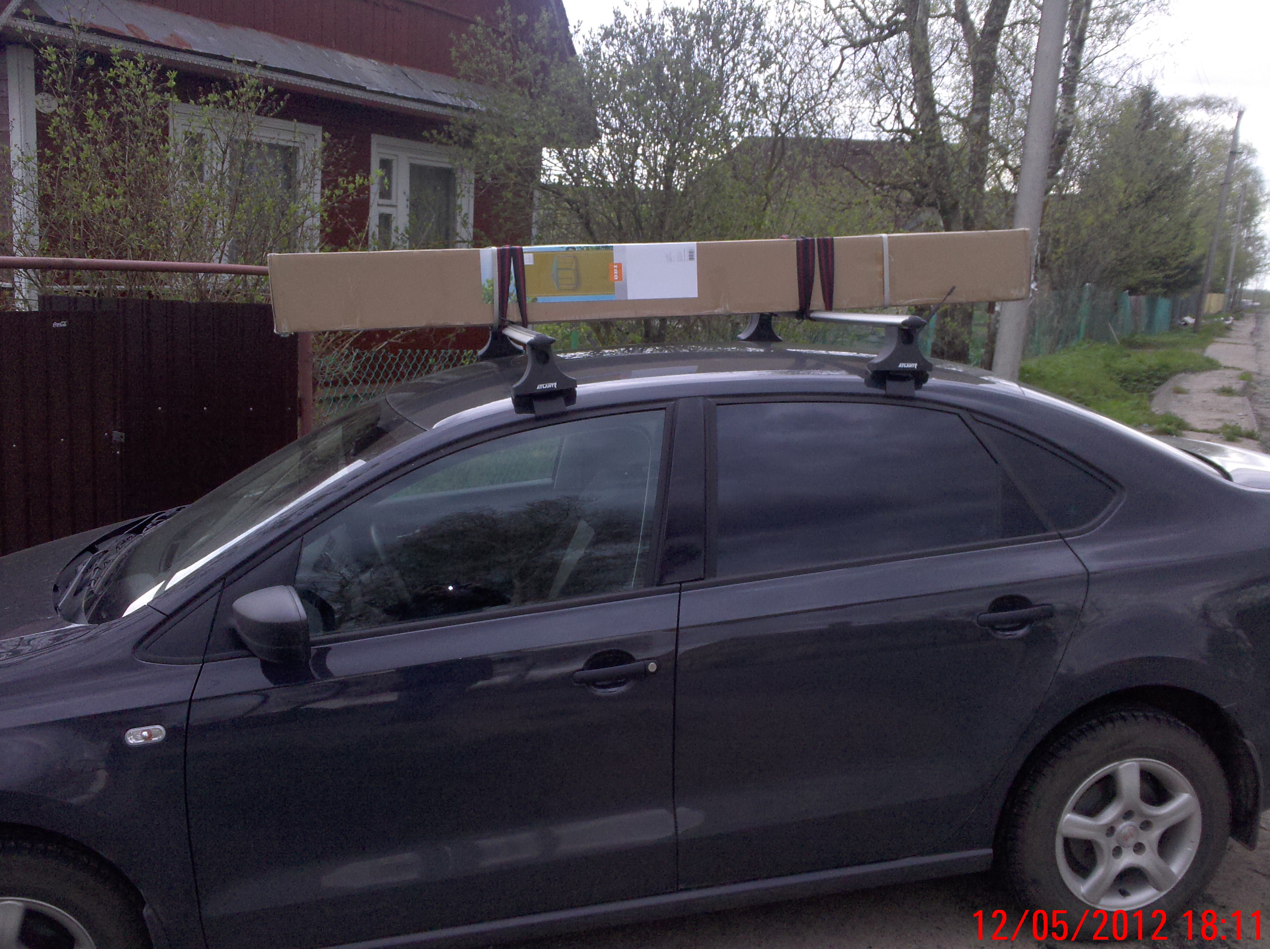 Теперь главное... на следующее утро багажник подвергся полевым испытаниям по максимально жесткому сценарию - на него были загружены стальные ворота с 3-х метровыми трубами. Вес груза - около 80 кг. Пробег с грузом - 130 км. Испытание прошло успешно, все узлы и агрегаты выдержали. Крыша в норме)
