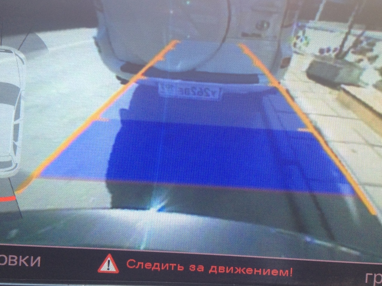 Бампер нужно видеть. И ВСЕГДА он виден когда стоит камера правильно. Для примера вот Вам снимок сейчас с моей Ауди.