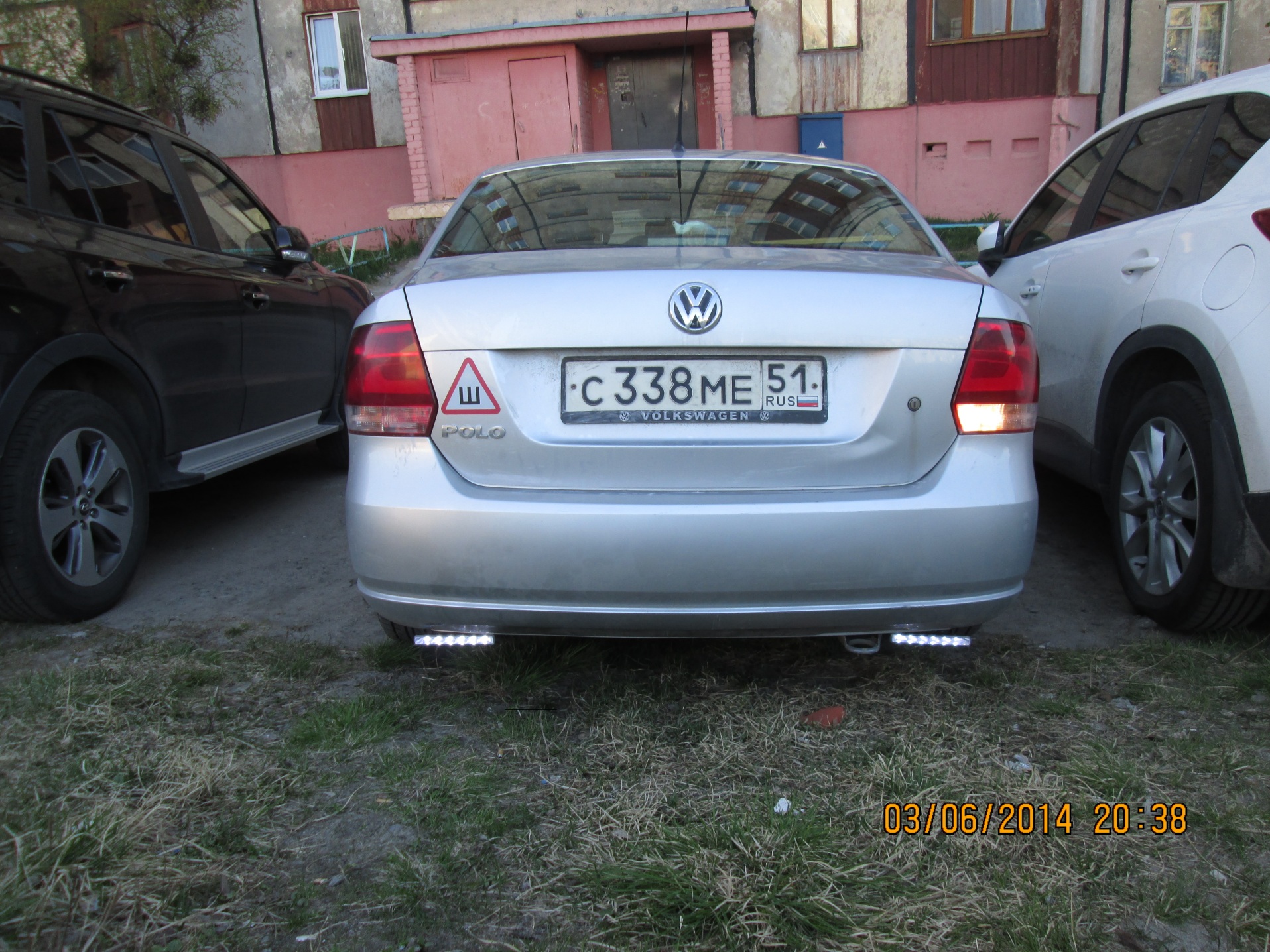 Сегодня наконец поставил светодиодный свет заднего хода, хотел сначала сразу врезать в бампер, но друзья посоветовали для начала прикрутить их снизу к бамперу, посмотреть как будут освещать, забрызгиваться грязью и т.д. прикрутил саморезами к бамперу, провода протянул через заглушку, здесь показано как ( viewtopic.php?f=19&t=7368&hilit=%D1%83%D1%81%D1%82%D0%B0%D0%BD%D0%BE%D0%B2%D0%BA%D0%B0+%D0%BF%D0%B0%D1%80%D0%BA%D1%82%D1%80%D0%BE%D0%BD%D0%B8%D0%BA%D0%BE%D0%B2&start=25), там говорят про ребро на 9см ниже верха, так это шумка из пенопласта, и ещё накладка пластиковая сидит на одном саморезе и 6 металлических фиксаторах очень тугих, надо отодрать 2 нижних а потом тянуть вверх, провода паял-надёжнее, эти контакты, которые многие применяют, я сначала на проводах попробовал, они рвут несколько жил при зажиме, это не есть хорошо.