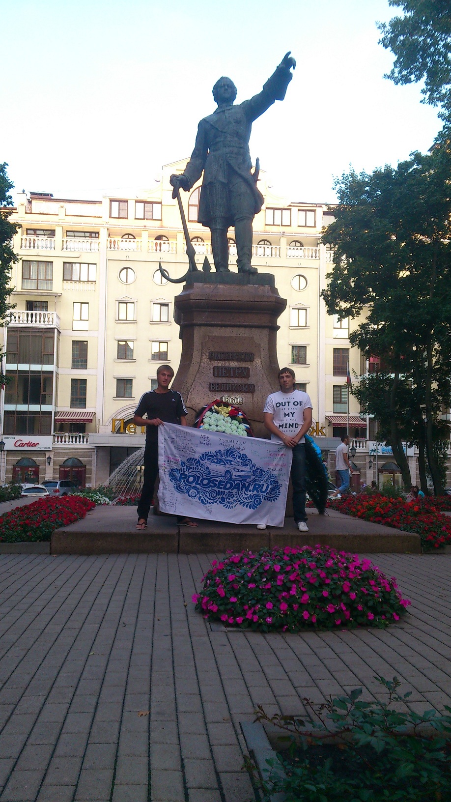 С радостью и волнением следил за темой, переживал, когда были задержки и трения. И вот наконец, флаг приедет 6-го июля! Хотя опять же все не совсем точно и окончательно определились за несколько дней, кого смог оповестил через личные сообщения и Драйв, и созвонившись с Юрой (scientific_brain) утром поехал его встречать. На въезде в город немного пофотографировались, правда, на телефон из-за моей оплошности, ну да ничего.