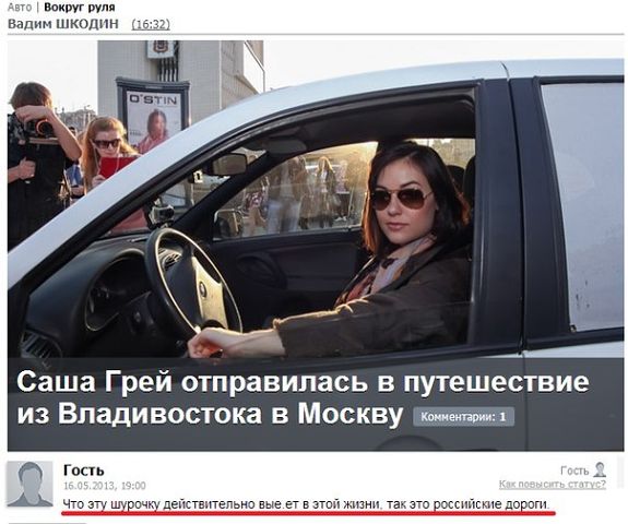 На ней саша грей автопробег по России исполняет