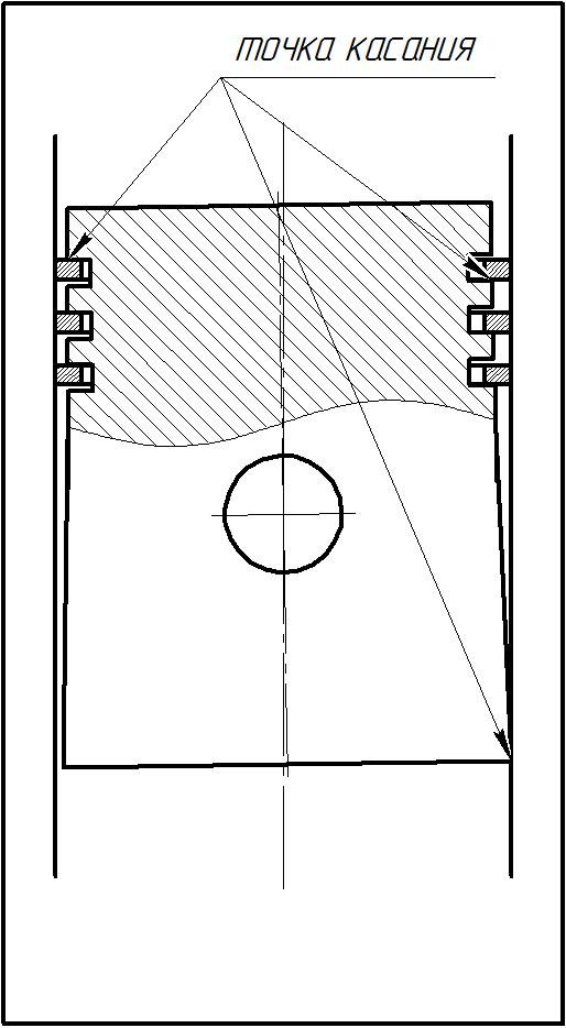 Из схемы видно, что при нормальной работе кольца удерживают поршень от проворачивания вокруг пальца, тем самым препятствуя стуку поршня в районе жарового пояса.