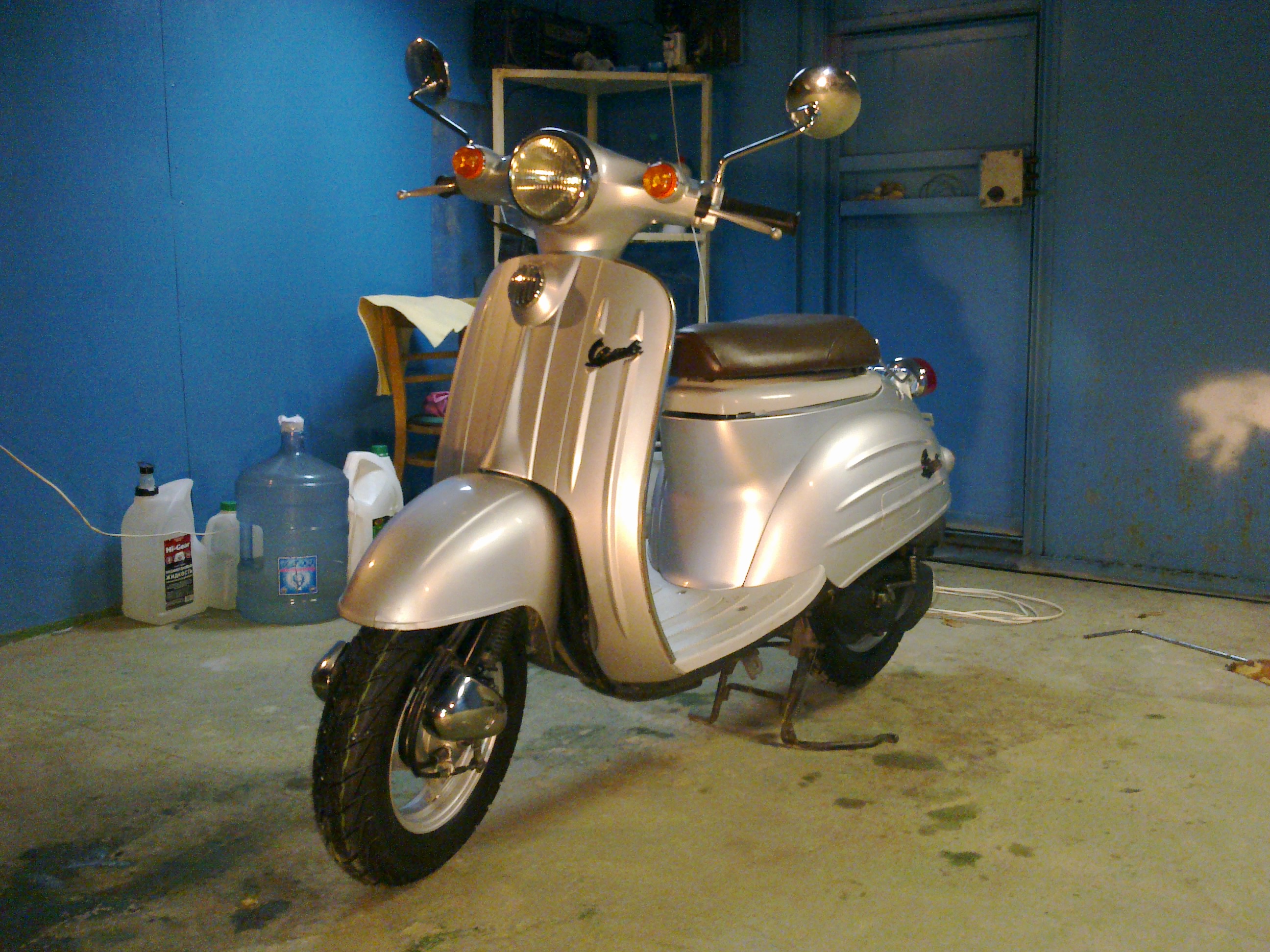Похвалюсь и я.Владею китайским скутером UMC.Год выпуска-2010.50 кубов.Четырёхтактный.4 л.с.Ограничители снял-скорость 75-85.