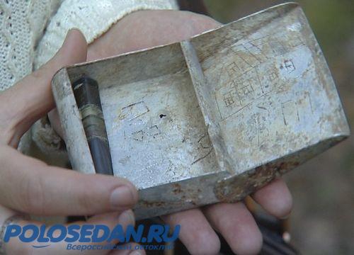 В отличном состоянии сохранились личные вещи павшего героя – мундштук, предметны обмундирования и именной портсигар, на котором нацарапаны фамилия и инициалы солдата – Ентин. П. В. Других сведений о бойце пока нет.