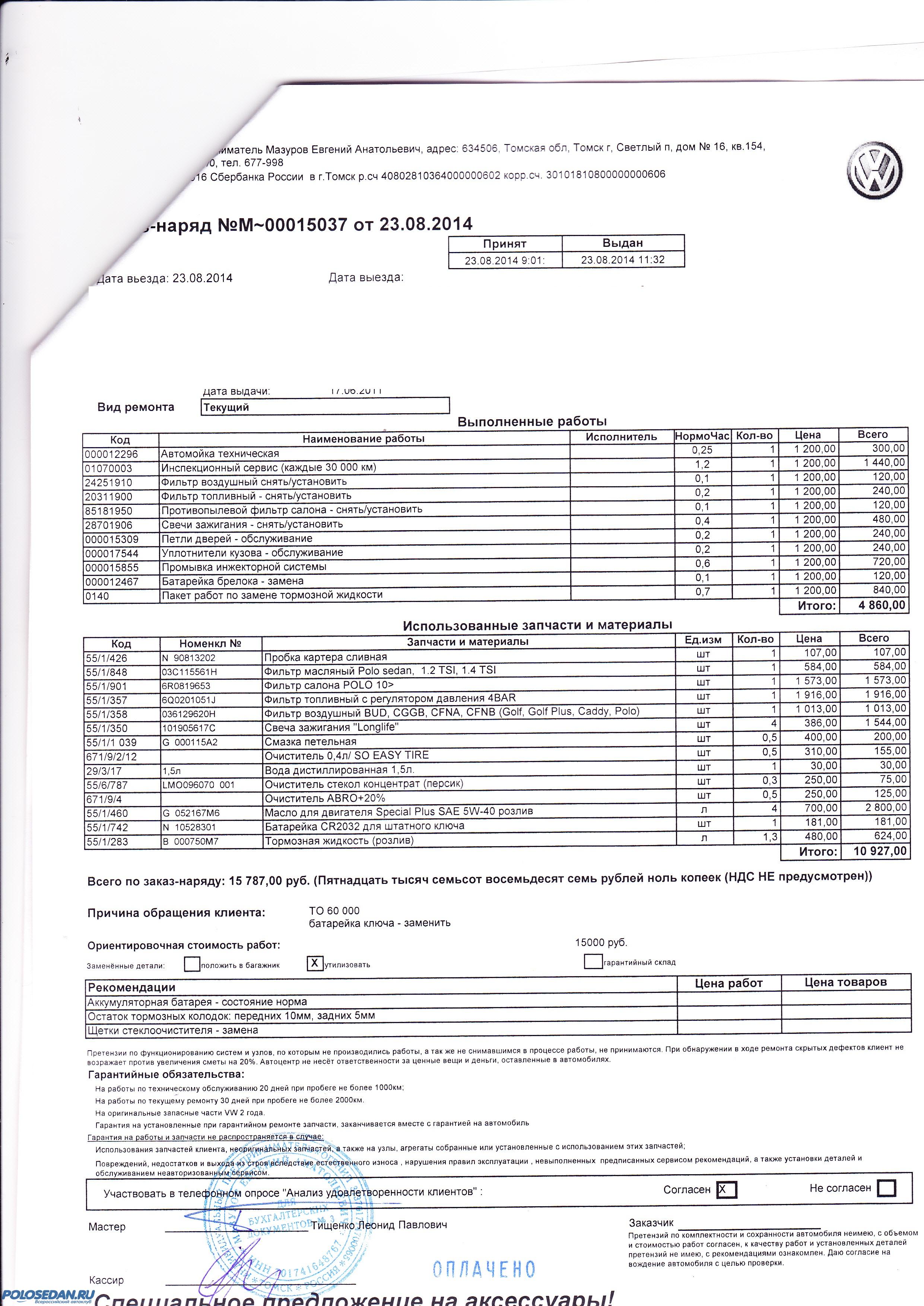 23.08.14г. прошел ТО-4 в Томске в нашем центре! цена обошлась классная!!! 15787 руб.