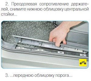 Как снять пластиковую облицовку порога в салоне правую(левую) - нужны фото! (текст читал здесь на какой-то страничке ,но ) без фото не понятно!!!