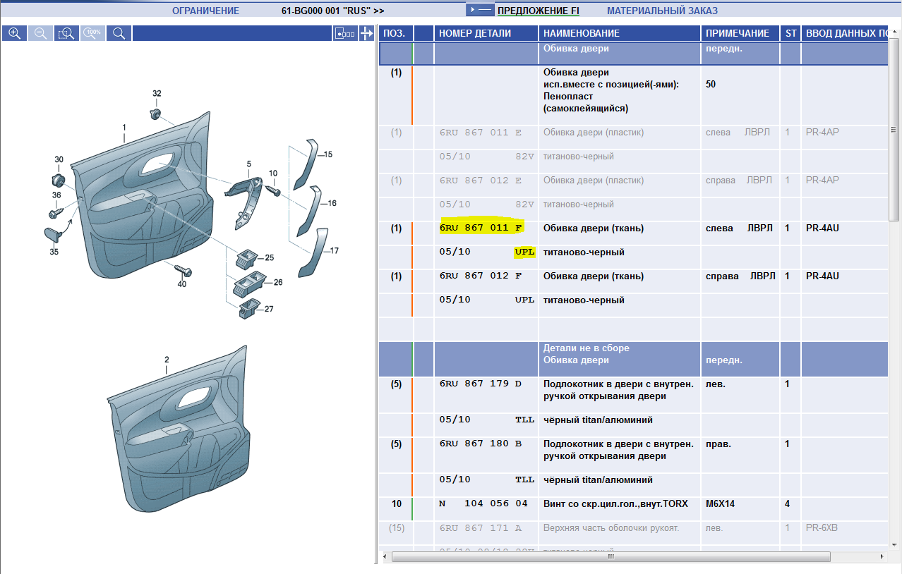 Подскажите, пожалуйста, номер обшивки передней левой двери в Highline.