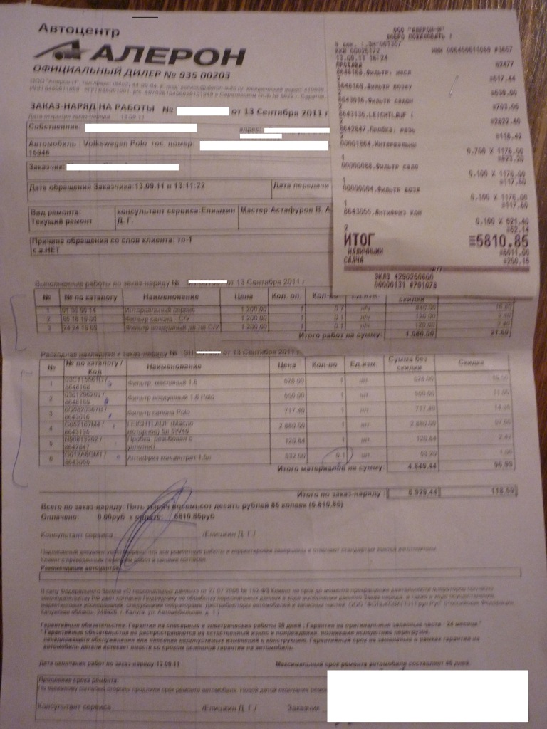 Сотрудник в Алероне обслуживает тигуан. Со своими расходниками разрешают.