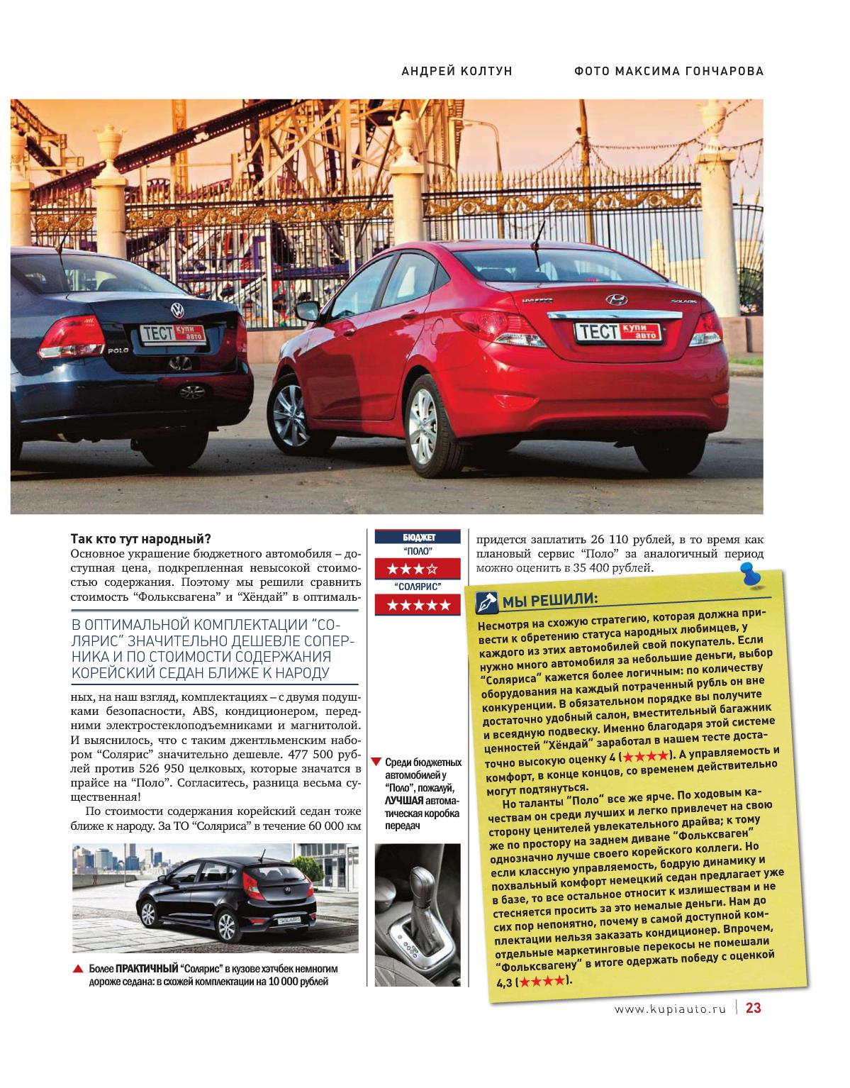Сравнение Поло, Солярис, Сандеро от АвтоРевю http://www.autoreview.ru/_archive/section/detail.php?ELEMENT_ID=115503&SECTION_ID=4995