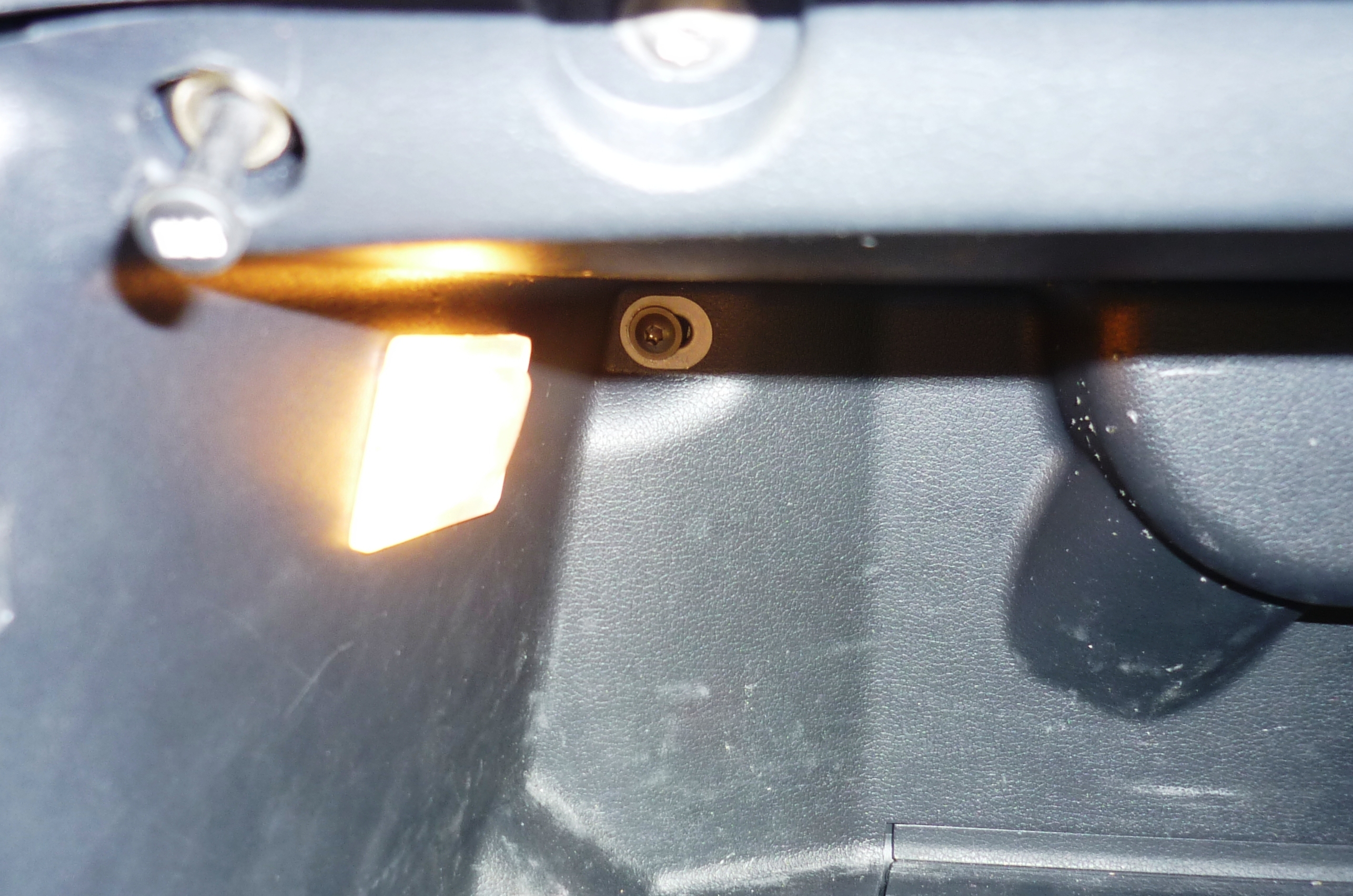Комментарий к файлу: часть магнита из мёртвого HDD в пазе скобы шарнира крышки бардачка