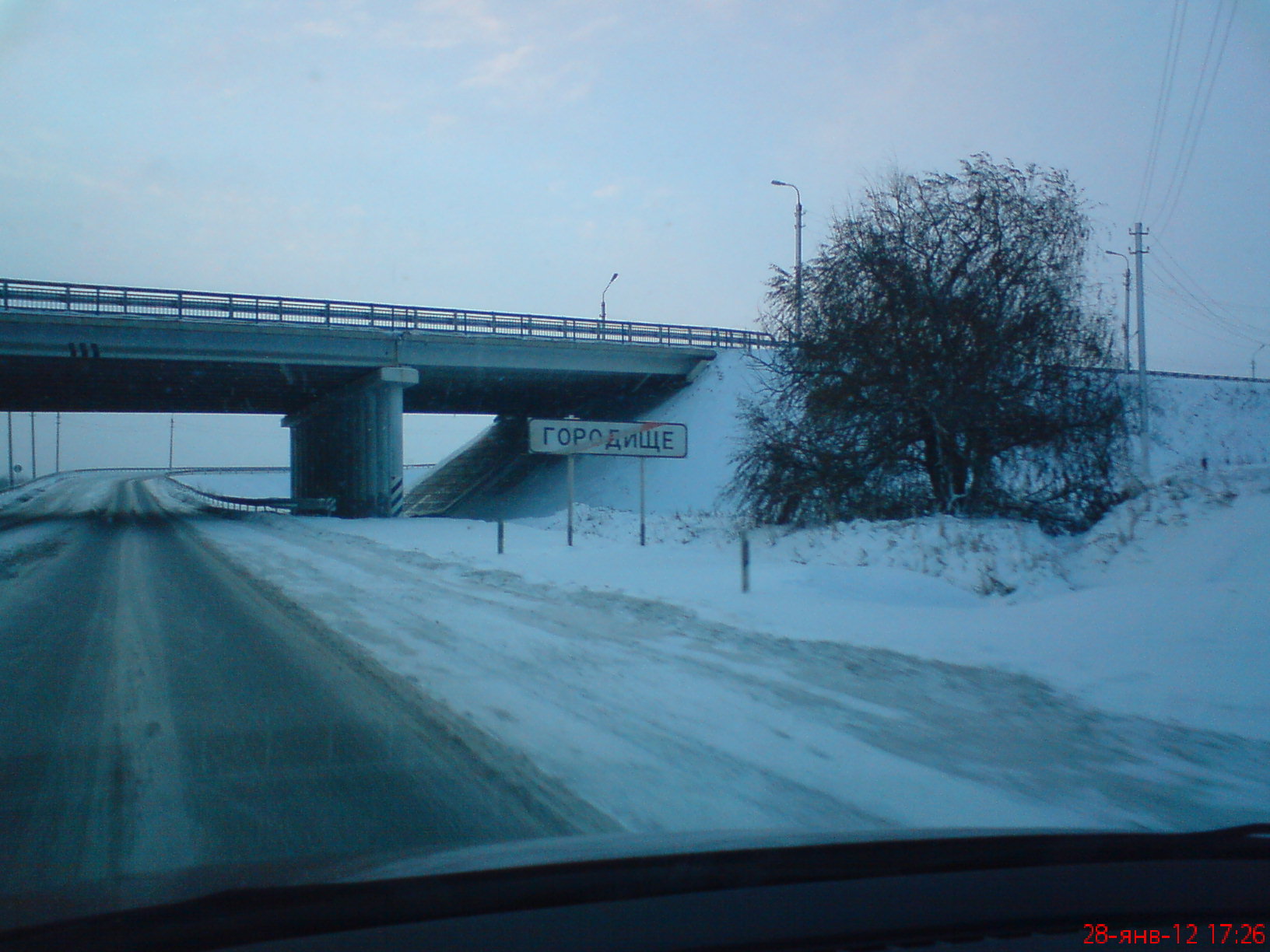 Комментарий к файлу: страшный спуск перед въездом в Городище - весь во льду и угол крутой.