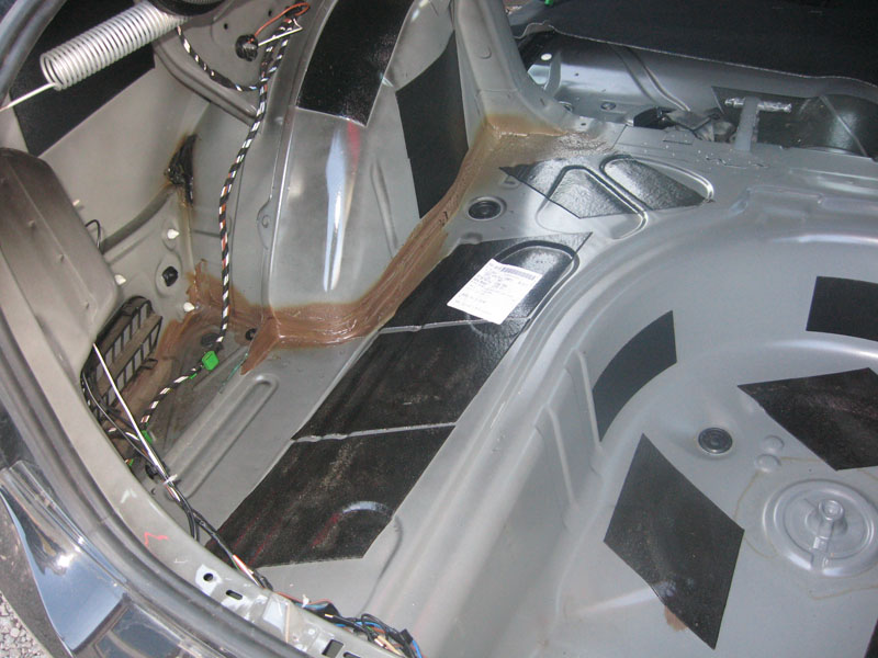 да со стороны салона. тише стало на много, правда при такой толщине очень сложно ставить на место элементы салона, и пол какой то воздушный получился. Когда разобрал салон был удивлен что ковролин не прорезинен и вода идет дальше, заодно и посушил