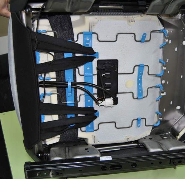 Лента под передними сиденьями прижимается резинками. (клеить не надо.)