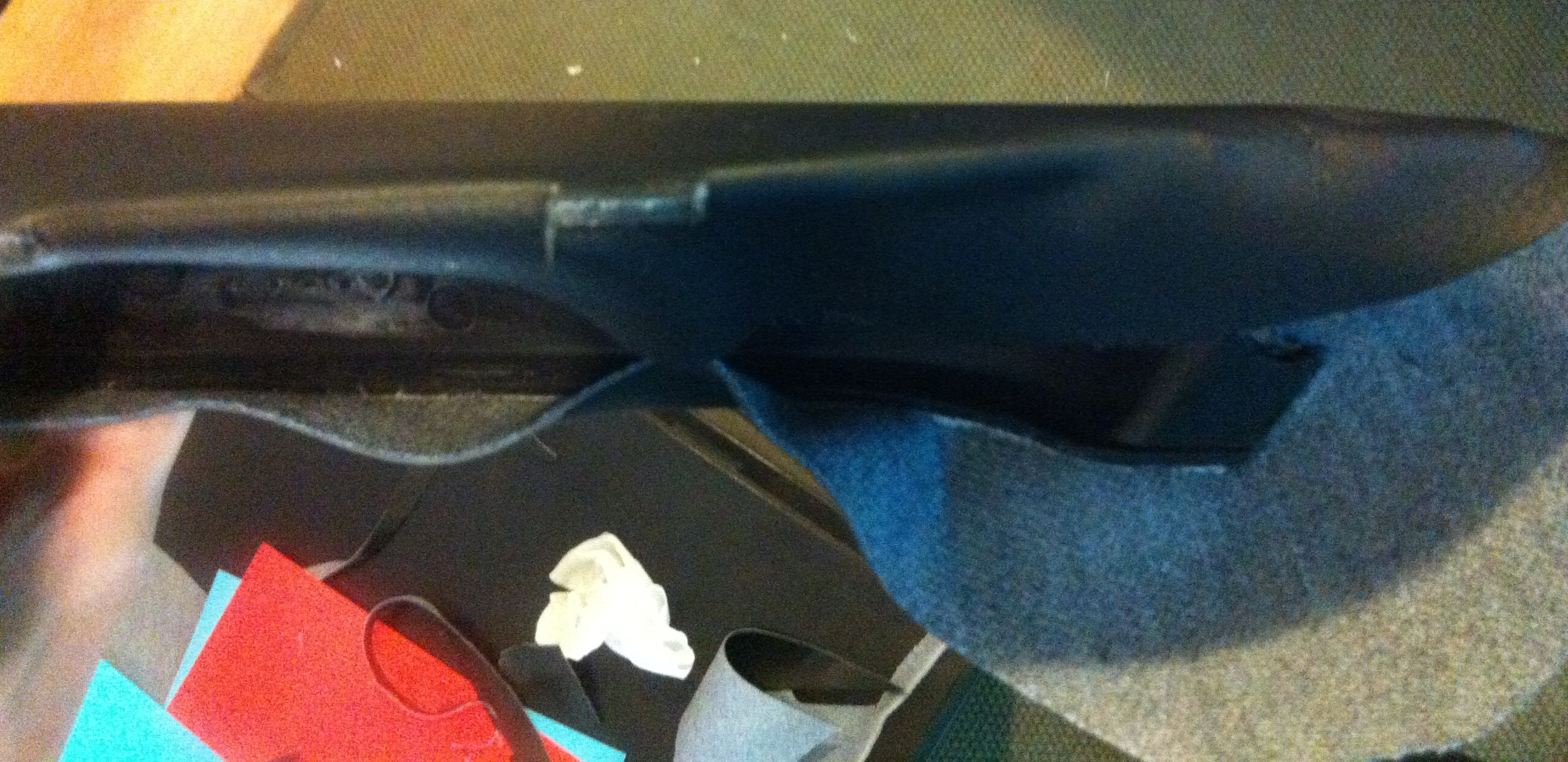 -вырезанный материал сначала приклеил, а уже потом дорезал отверстия и форму