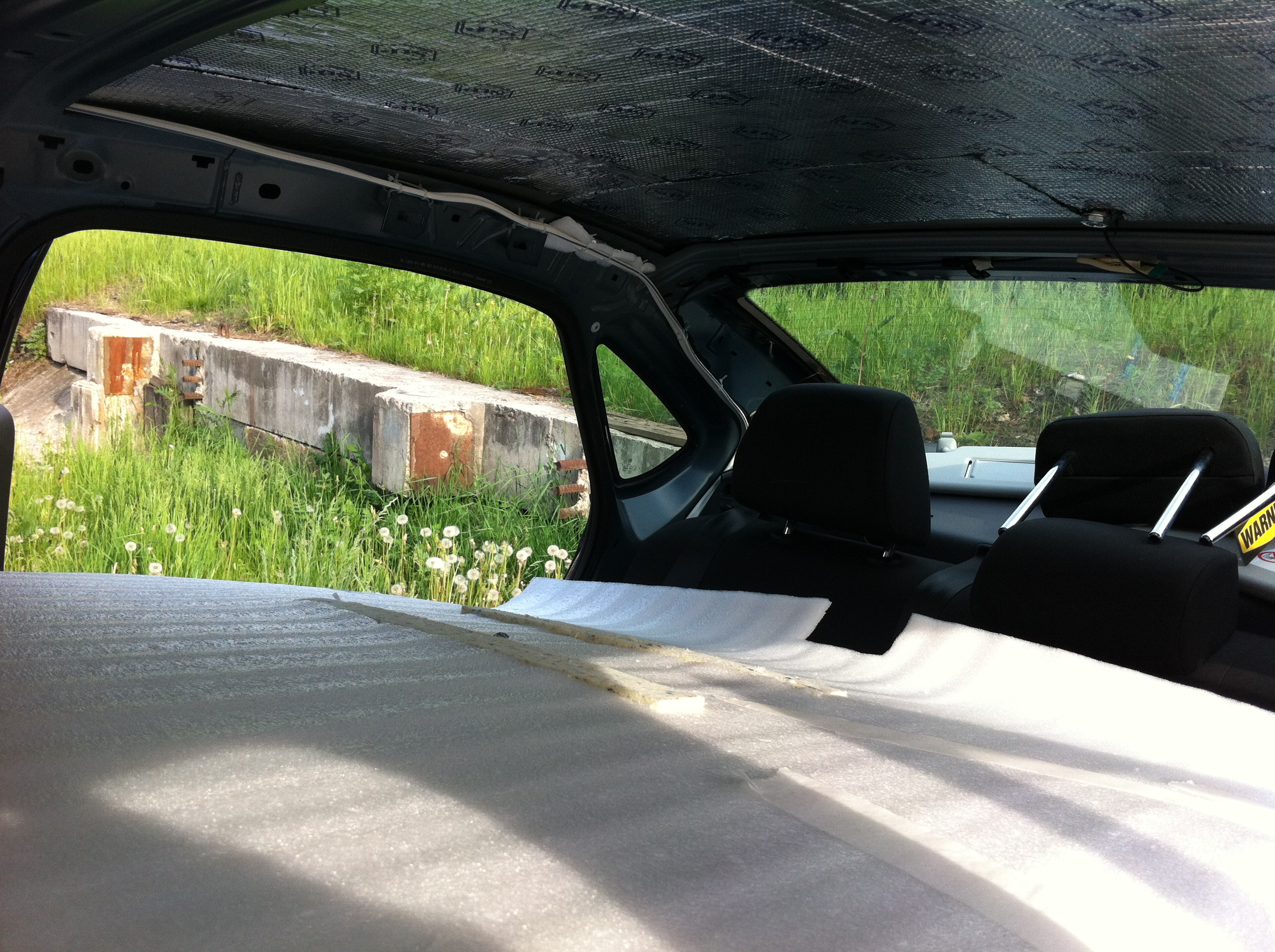 Места там вагон! Я приклеил к металлу стп силвер и сверху положил Фольгированный пористый (название типа Полифом ППЭ) толщиной 10 мм, НО посередине крышы, ближе к переду идет поперечина, под ней надо меньше, я 5 мм положил. с 10 мм под поперечиной средний стойки не поставишь...где поперечина легко узнать по двум наклееным "брусочкам" на общивке крыши