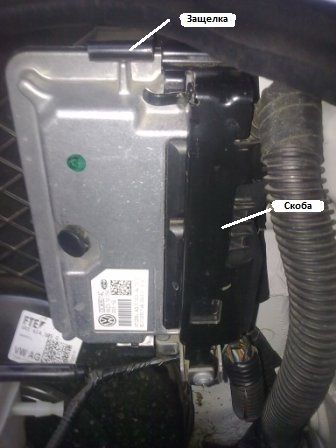 Для тех, у кого стоит запорная скоба на БУ двигателя (на двигателях CFNA(B) и CWVA(B) детали одинаковы!):