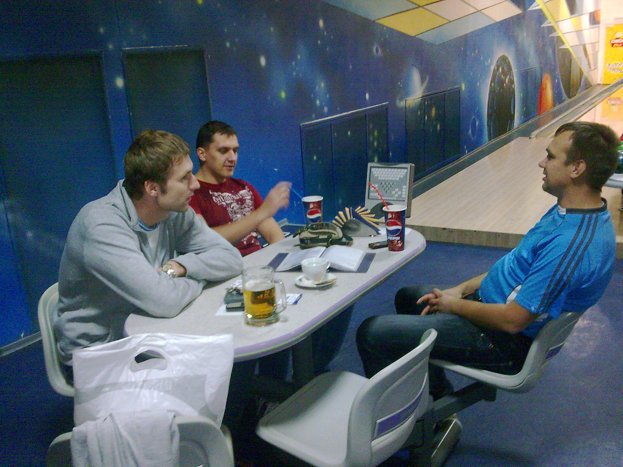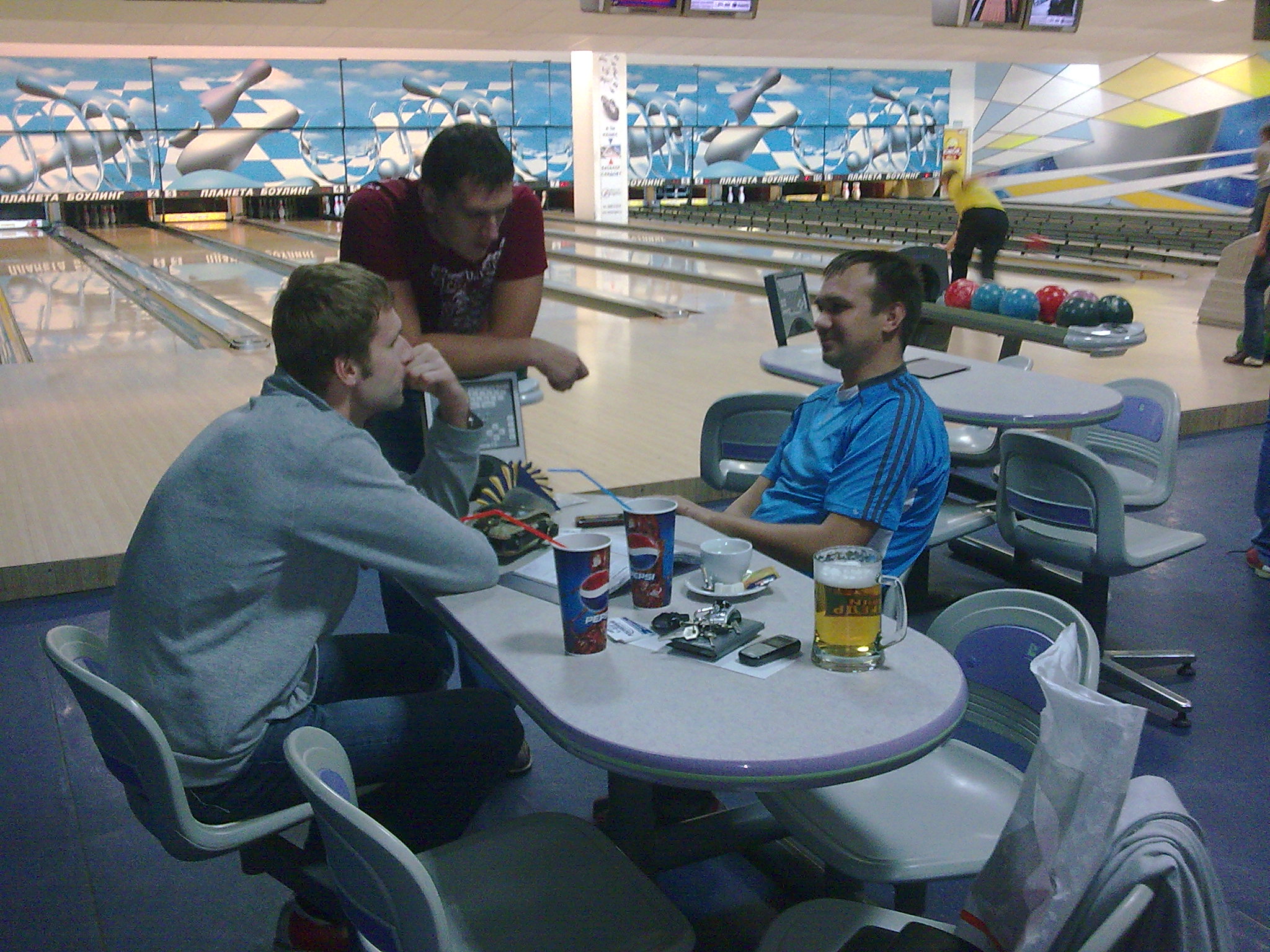 Вадим, Юра, спасибо за отчёты! Отлично провели время. Многое обсудили, но многое ещё необходимо "помусолить". А насчёт страйков... Ну что тут скажешь? Опыт не пропьёшь :-) А вобще, надо почаще гонять в боулинг, бильярд.