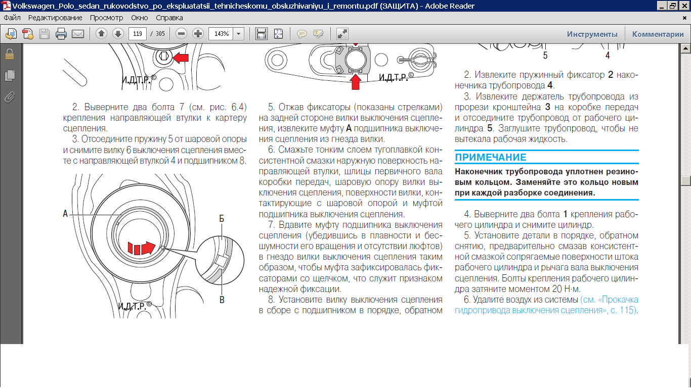 Сам нашел.1. Проверьте состояние подшипника выключения сцепления, который должен вращаться легко, равномерно и бесшумно и в нем должен отсутствовать люфт.