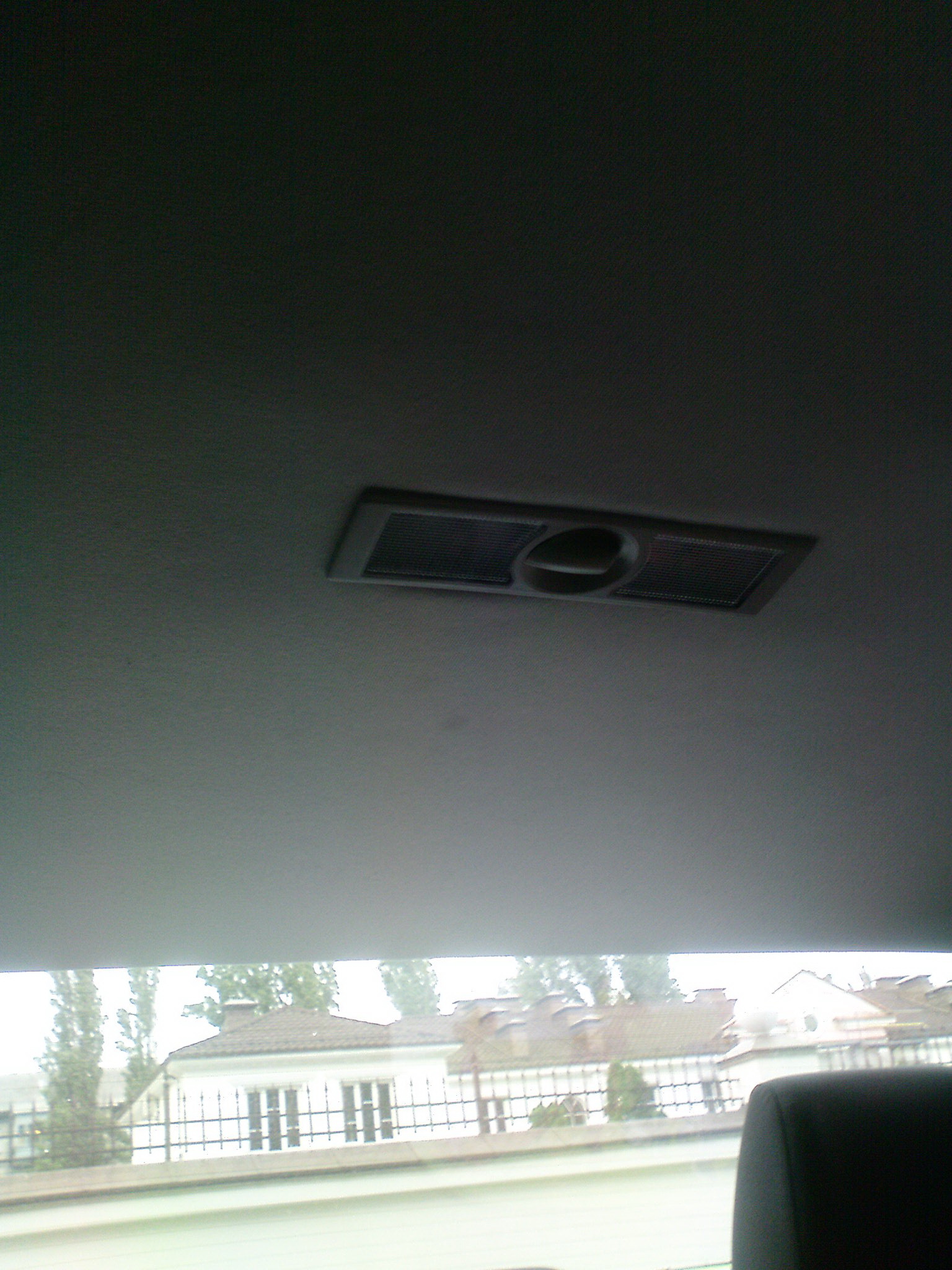 Потолок не снимал - вырезал отверстие и протянул провода к левой передней стойке. Снять пришлось заднюю левую ручку на потолке, и стойки слева переднюю и среднюю.