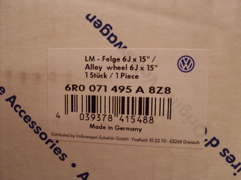 Забрал сегодня свои литые диски Sima. Оригинал VAG. Артикульный номер 6R0 071 495 A8Z8. На внутренней части диска указан производитель диска Ronal. В каждой коробке есть документация и паспорт на диск. Колпачок на диск есть в комплекте. Ниппеля нет, его придётся покупать отдельно. Диски заказывал в Экзисте.