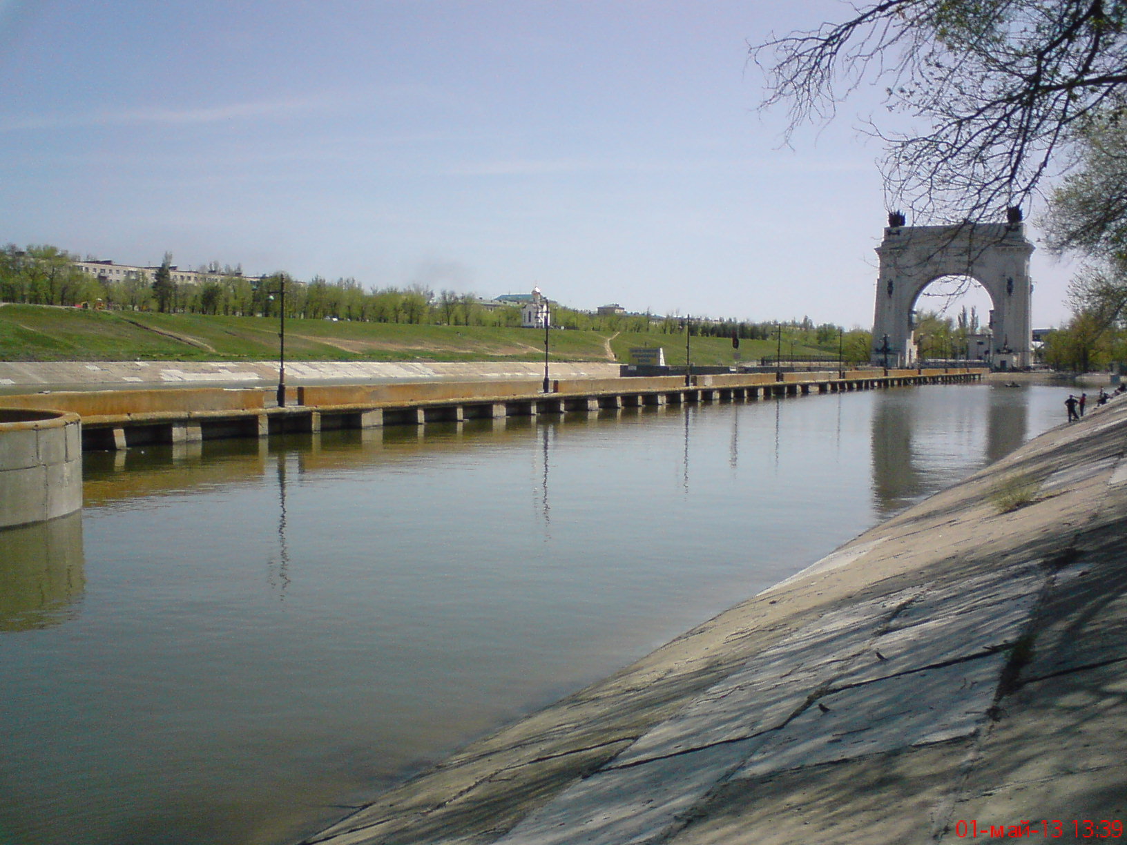 Отдыхали мы возле первого шлюза Волго-Донского канала ,рядом вода и зелёная лужайка.