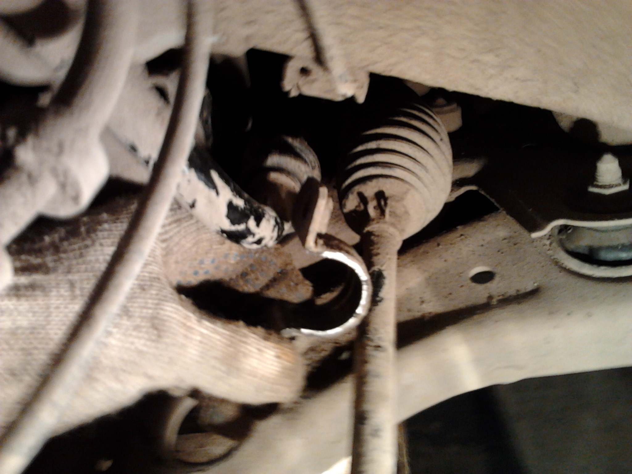 В оконцовке,когда установили всё на место,опускаем авто на землю и только тогда окончательно затягиваем винты,крепящие скобу втулки.И ещё:перед тем,как ставить новые втулки,посмотрите на стабилизатор в этом месте,он весь в прикипевшей резине.Я удалял мелкой шкуркой(ничего под рукой не было),можно какой нибудь химией.