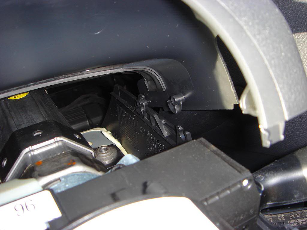Далее. Отстегивам часть кожуха рулевой колонки (под приборкой) потянув на себя: