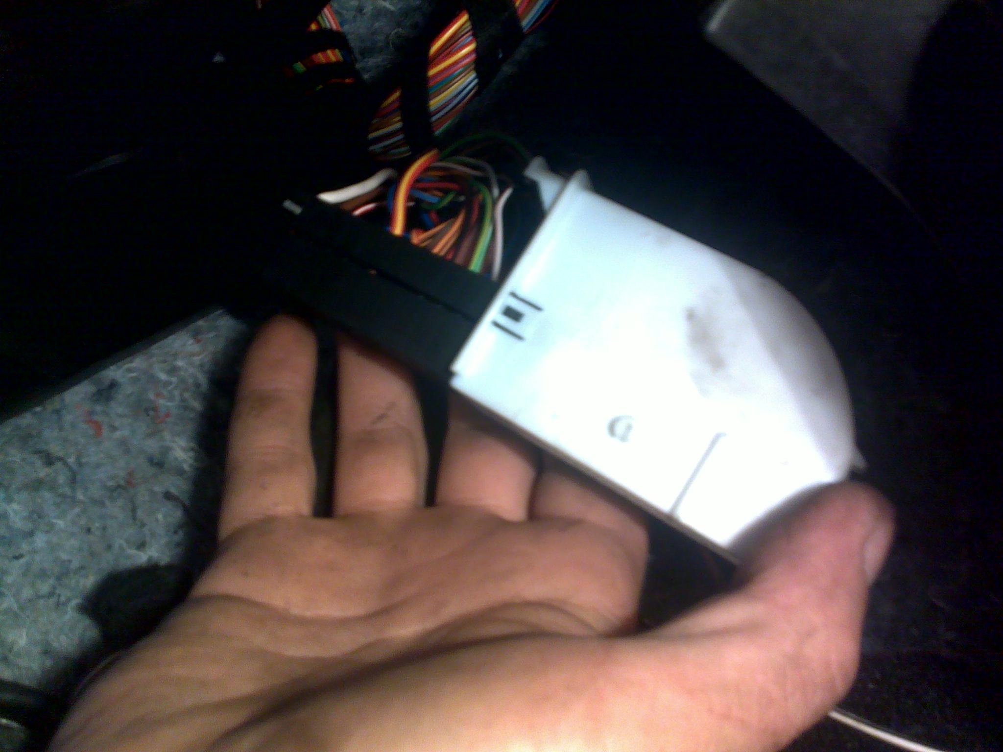 2. Подключение провода к блоку центральной электроники.Сам блок находится под торпедой, с водительской стороны, в районе педали сцепления/тормоза. Для удобства работы может потребоваться фонарик.