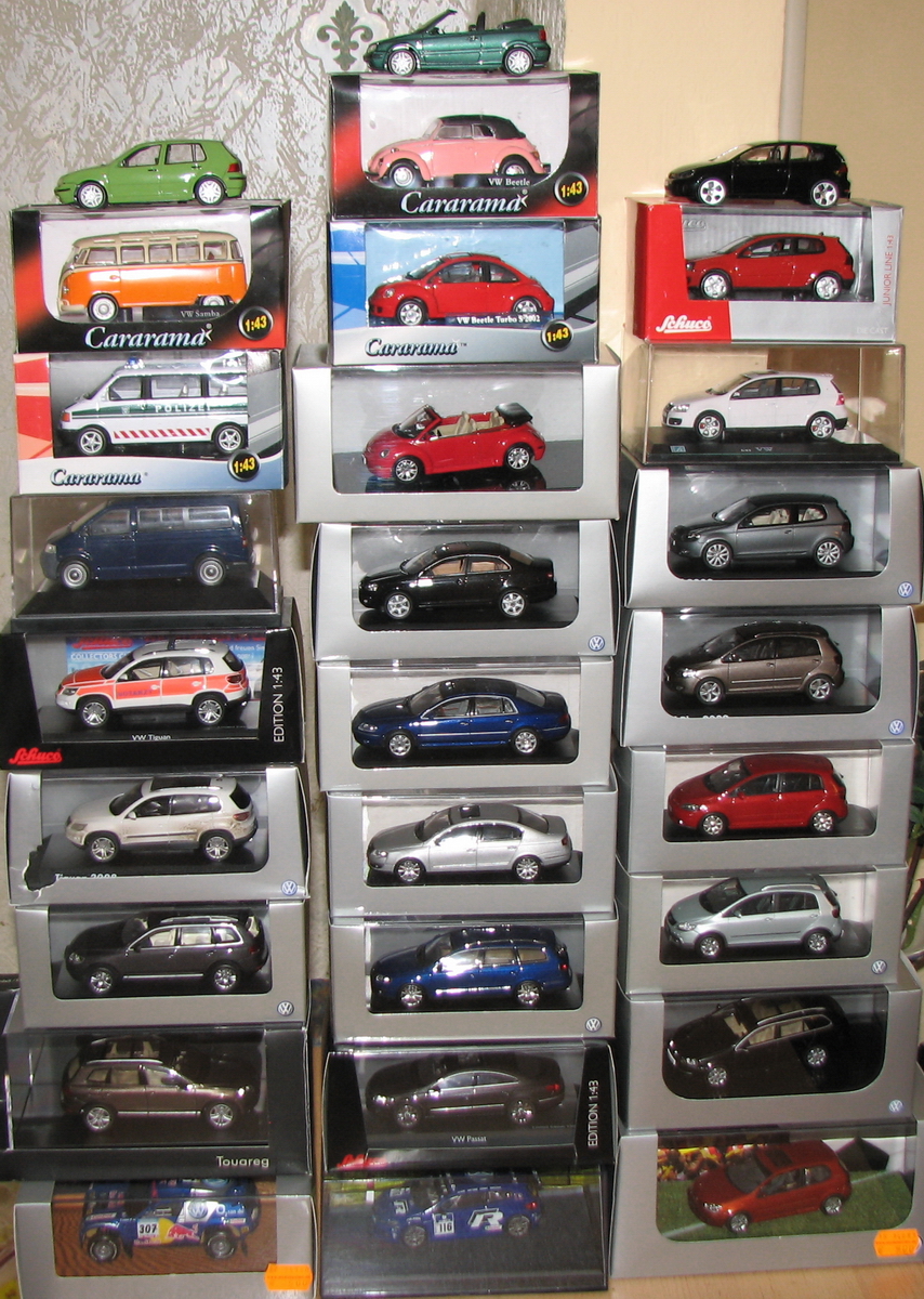 Да это не принципиально, ИМХО :) У меня, например, несколько тем в коллекции, кроме фольцев, наши членовозы и парадные авто, полиция/милиция мира, в т.ч. американские форд-краун-вики полицейские в разных окрасах, внедорожники, Мерсы S-class, БМВ 6-series купе (уже 4 штуки от разных производителей), военная техника... Жаль только большая часть по коробкам, так как пока не в своем жилье контуюсь, а то бы сфоткал. Когда выезжал с постоянного места жительства, в коллекции было порядка 300шт, счас наверно под 500..